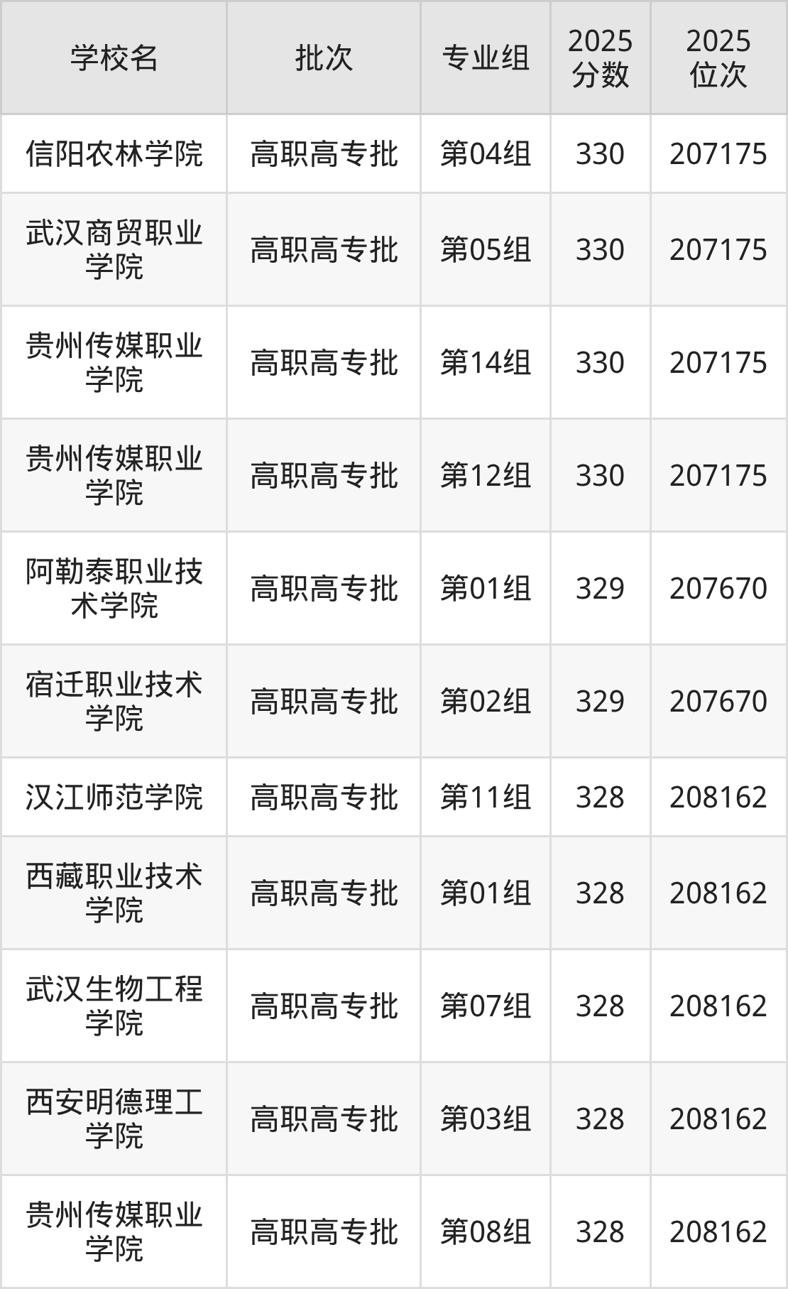 2025年湖北高考物理类329分(207176名~207670名)能上的大学有宿迁职业技术学院第02组、阿勒泰职业技术学院第01组。