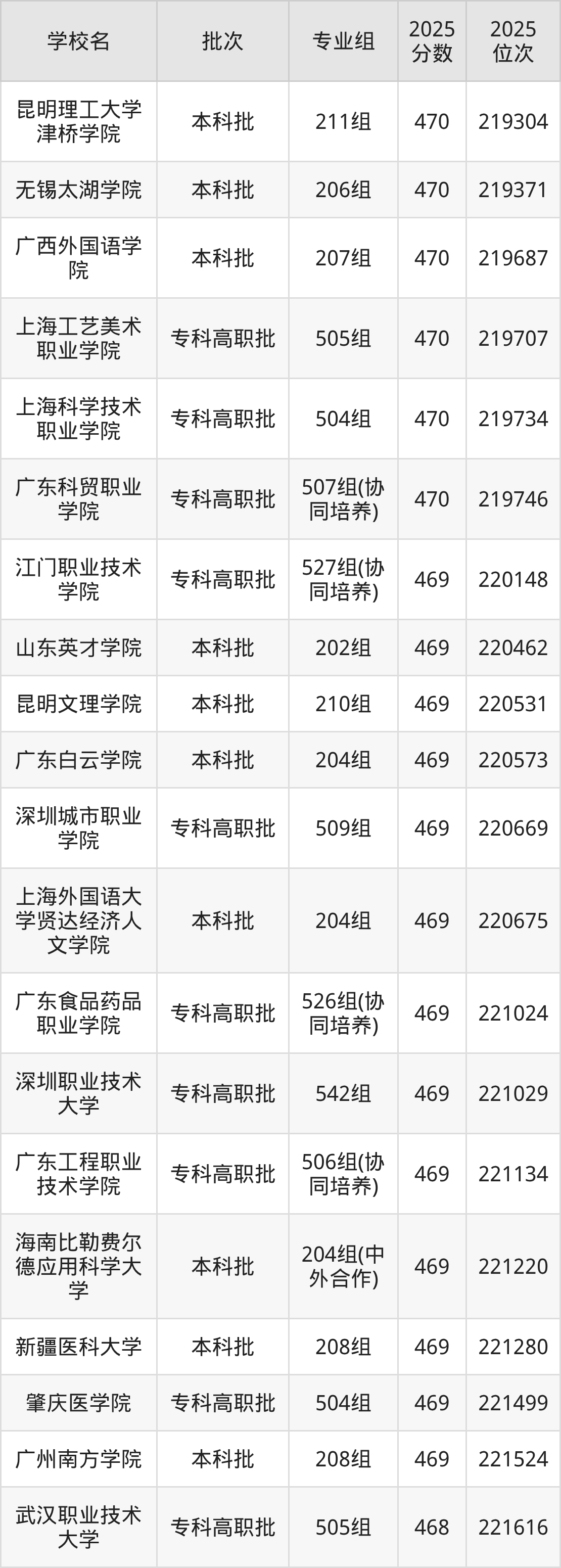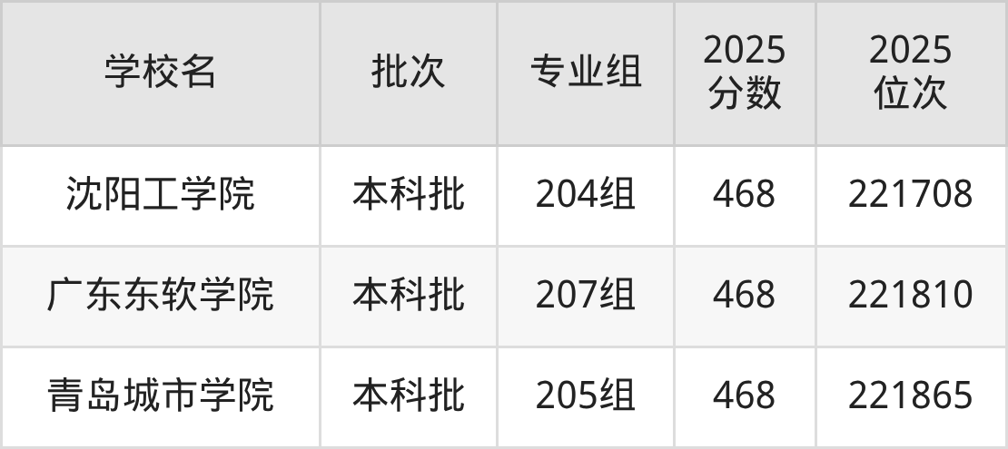 2025年广东高考物理类469分(219775名~221580名)能上的大学有新疆医科大学208组、广东白云学院204组、广州南方学院208组、山东英才学院202组等。
