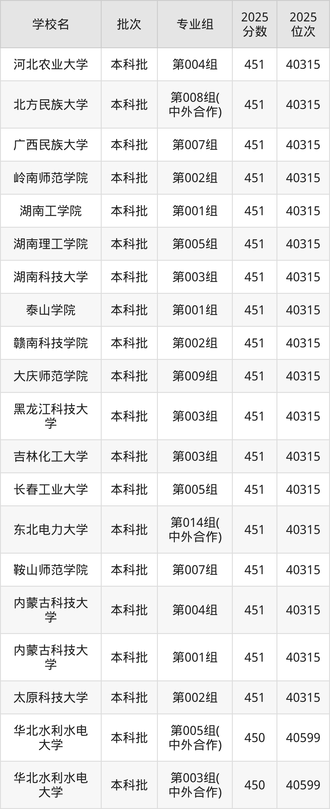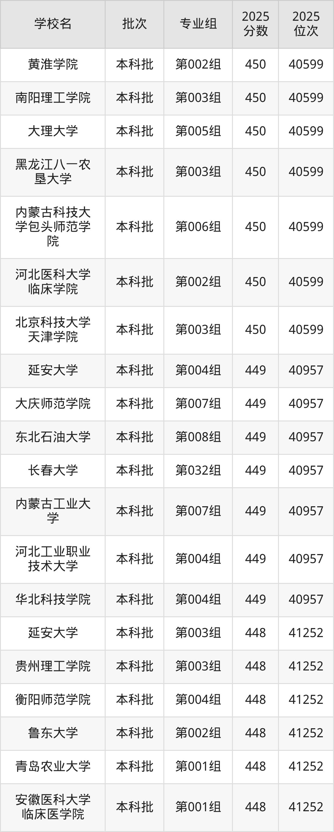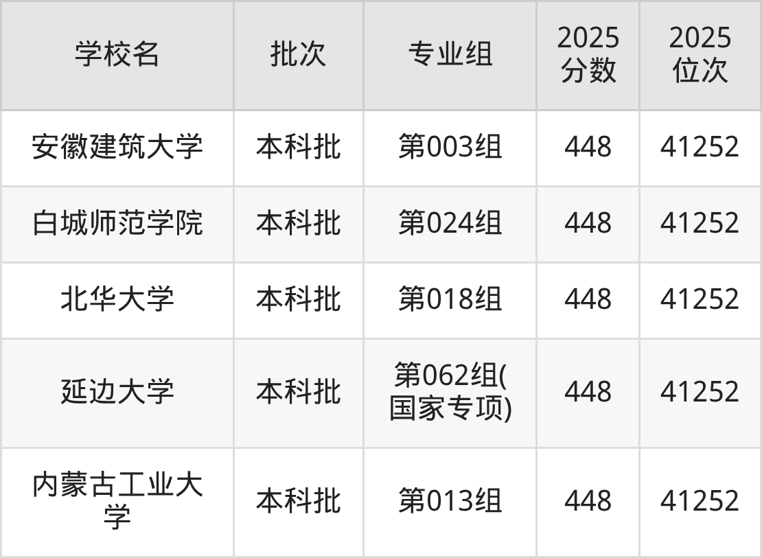 2025年吉林高考物理类449分(40600名~40957名)能上的大学有华北科技学院第004组、河北工业职业技术大学第004组、内蒙古工业大学第007组、长春大学第032组等。
