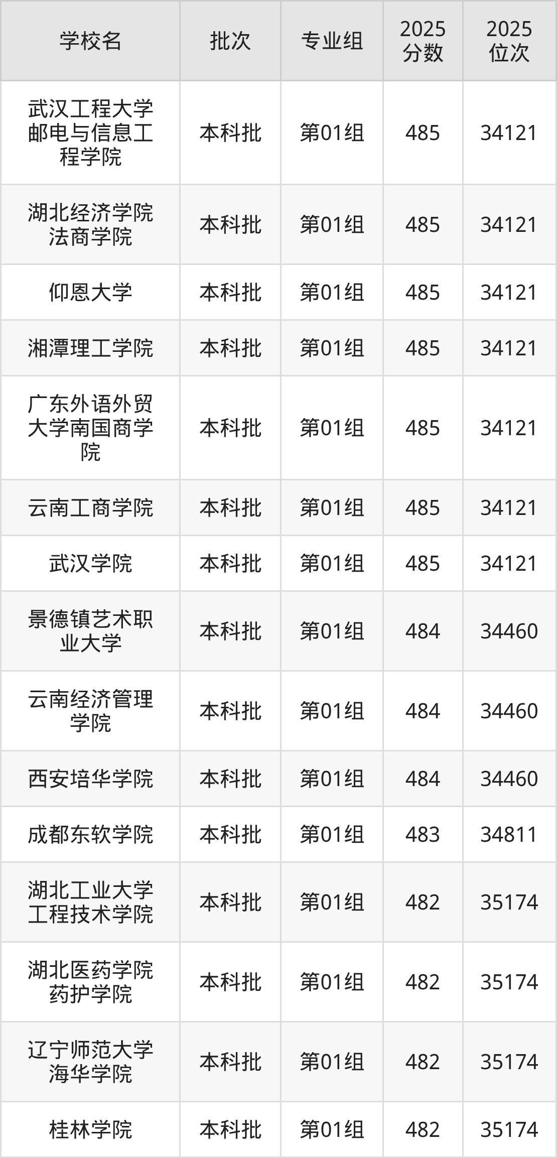 2025年湖北高考历史类483分(34461名~34811名)能上的大学有成都东软学院第01组。