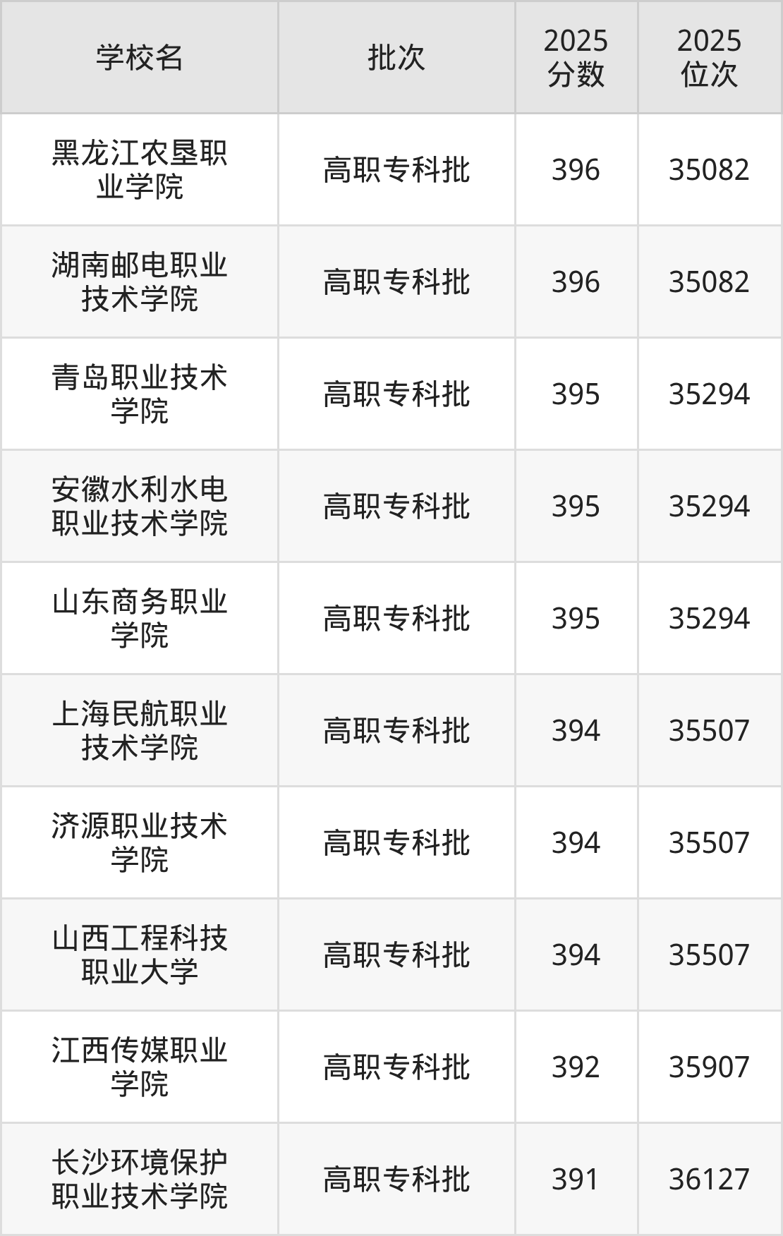 2025年辽宁高考历史类393分(35508名~35689名)录取位次低于该区间(较稳妥)的有江西传媒职业学院(35907名)、长沙环境保护职业技术学院(36127名)等;录取位次高于该区间(可冲)的有山西工程科技职业大学(35507名)、上海民航职业技术学院(35507名)等。