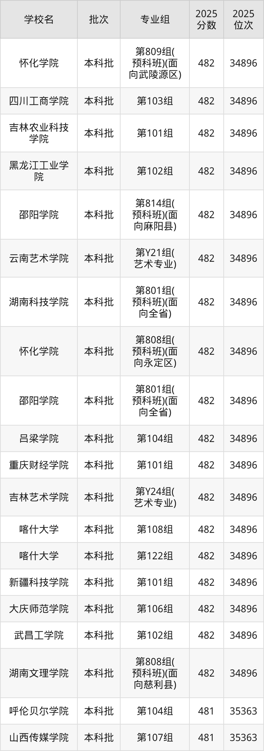 这些都是2026年高考历史类35364名~35807名考生可以报考的大学,更多学校名单如下表所示: