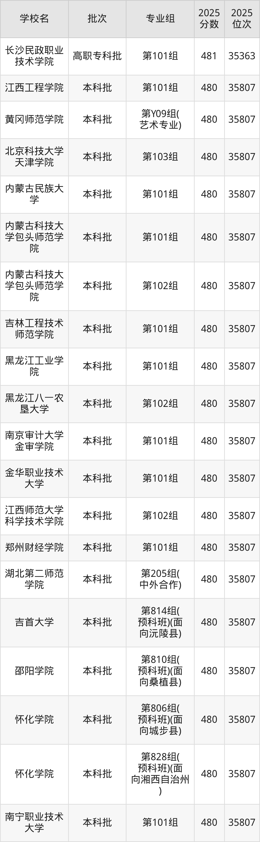 湖南高考480分:历史类排名35807位、物理类排名114419位。该分数位次对应能上的大学历史类有北京科技大学天津学院第103组、内蒙古民族大学第101组;物理类有北京建筑大学第103组、天津农学院第104组,更多名单如下文所示,2026届考生可参考。