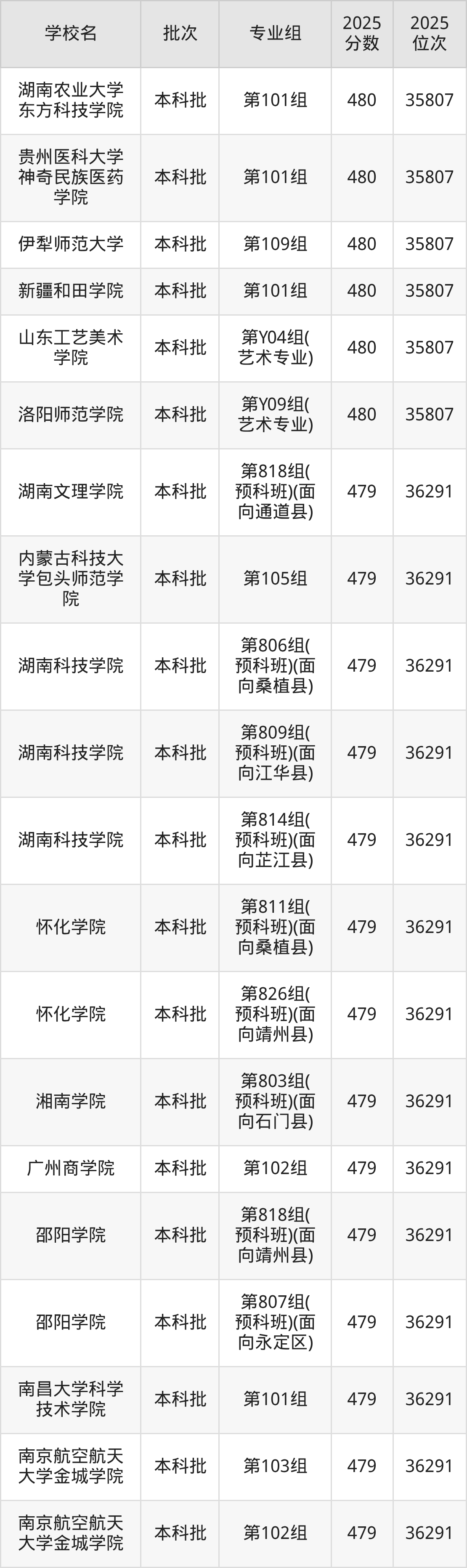 二、湖南480分位次排名能上的大学