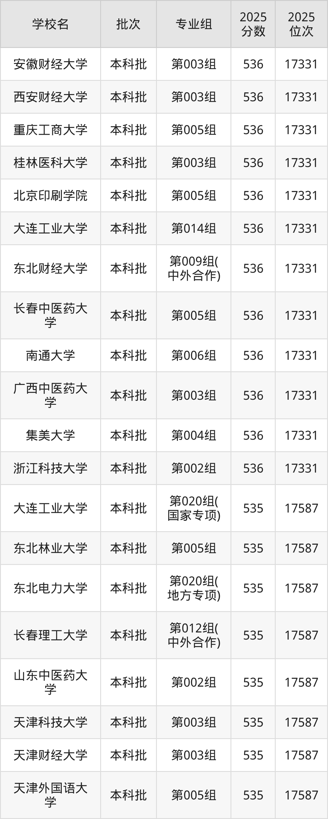 二、吉林533分位次排名能上的大学