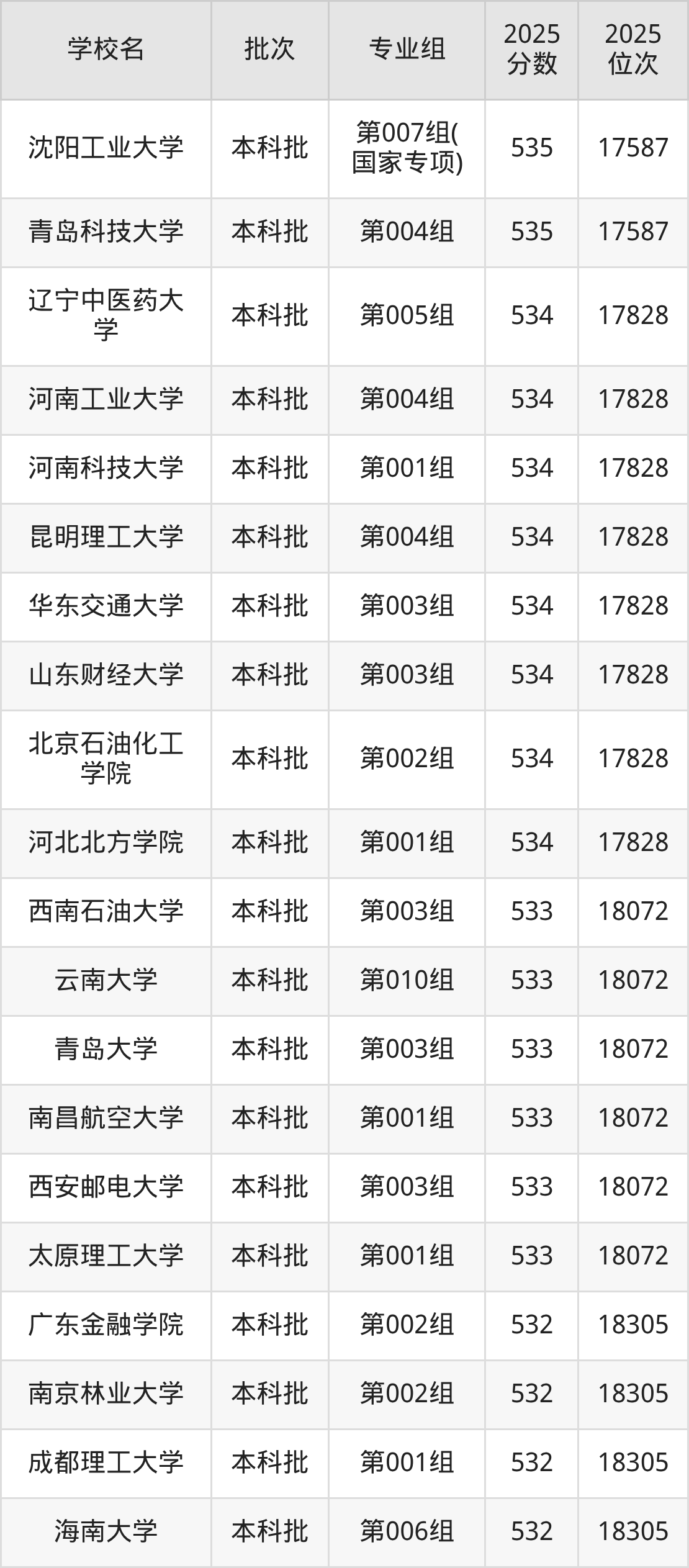 2025年吉林高考物理类533分(17829名~18072名)能上的大学有太原理工大学第001组、南昌航空大学第001组、青岛大学第003组、西南石油大学第003组等。