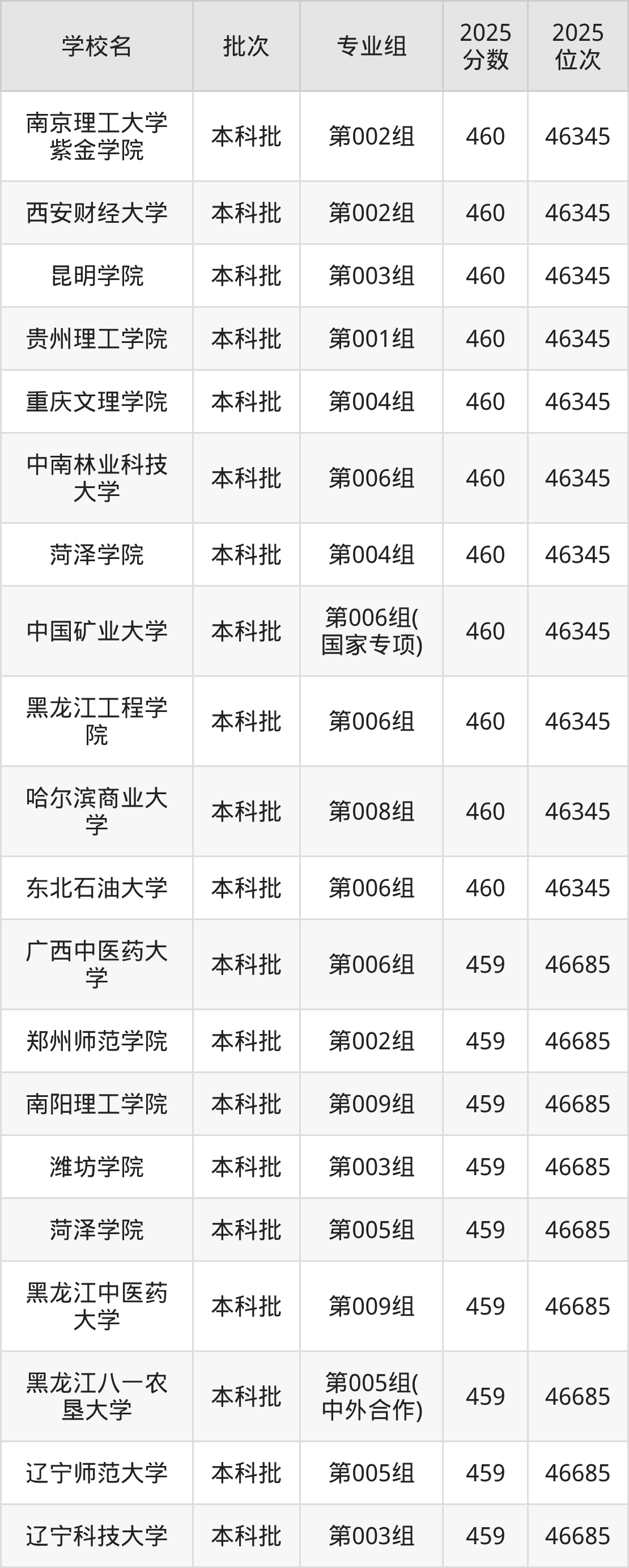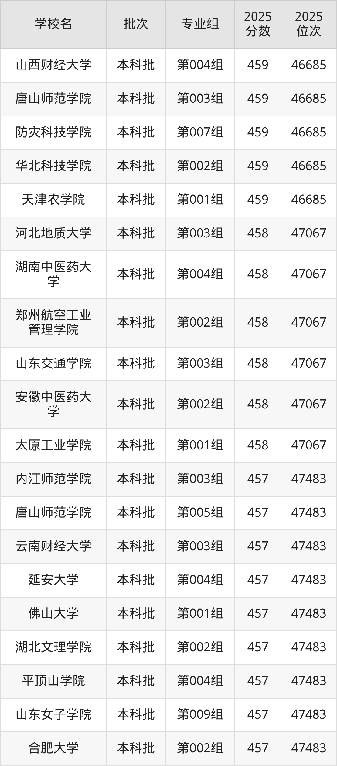2025年黑龙江高考物理类458分(46686名~47067名)能上的大学有河北地质大学第003组、太原工业学院第001组、安徽中医药大学第002组、山东交通学院第003组等。