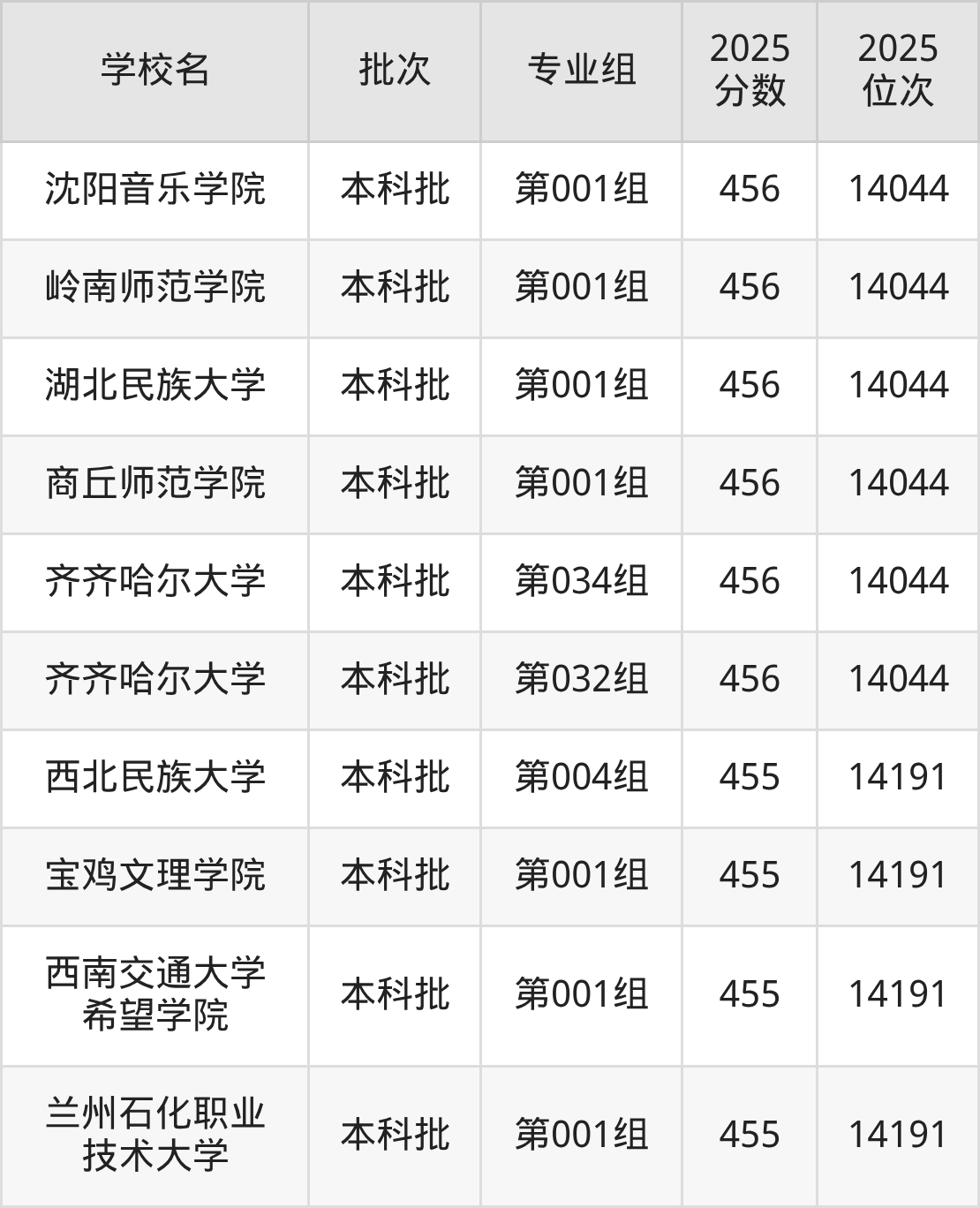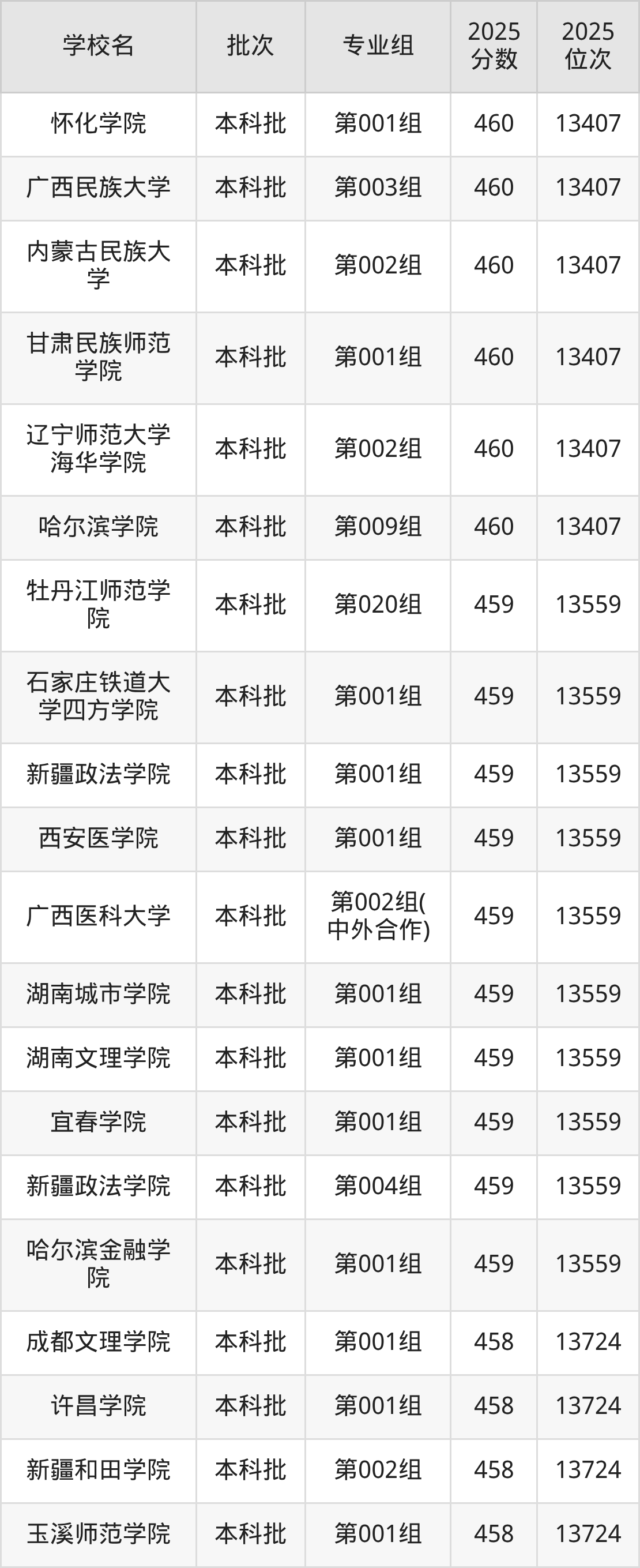 这些都是2026年高考历史类13560名~13724名考生可以报考的大学,更多学校名单如下表所示: