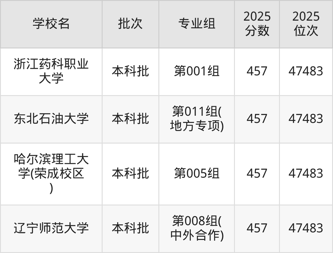另外录取位次低于该区间(较稳妥)的有东北石油大学第011组(地方专项)(47483名)、唐山师范学院第005组(47483名)等;录取位次高于该区间(可冲)的有黑龙江中医药大学第009组(46685名)、南阳理工学院第009组(46685名)等。