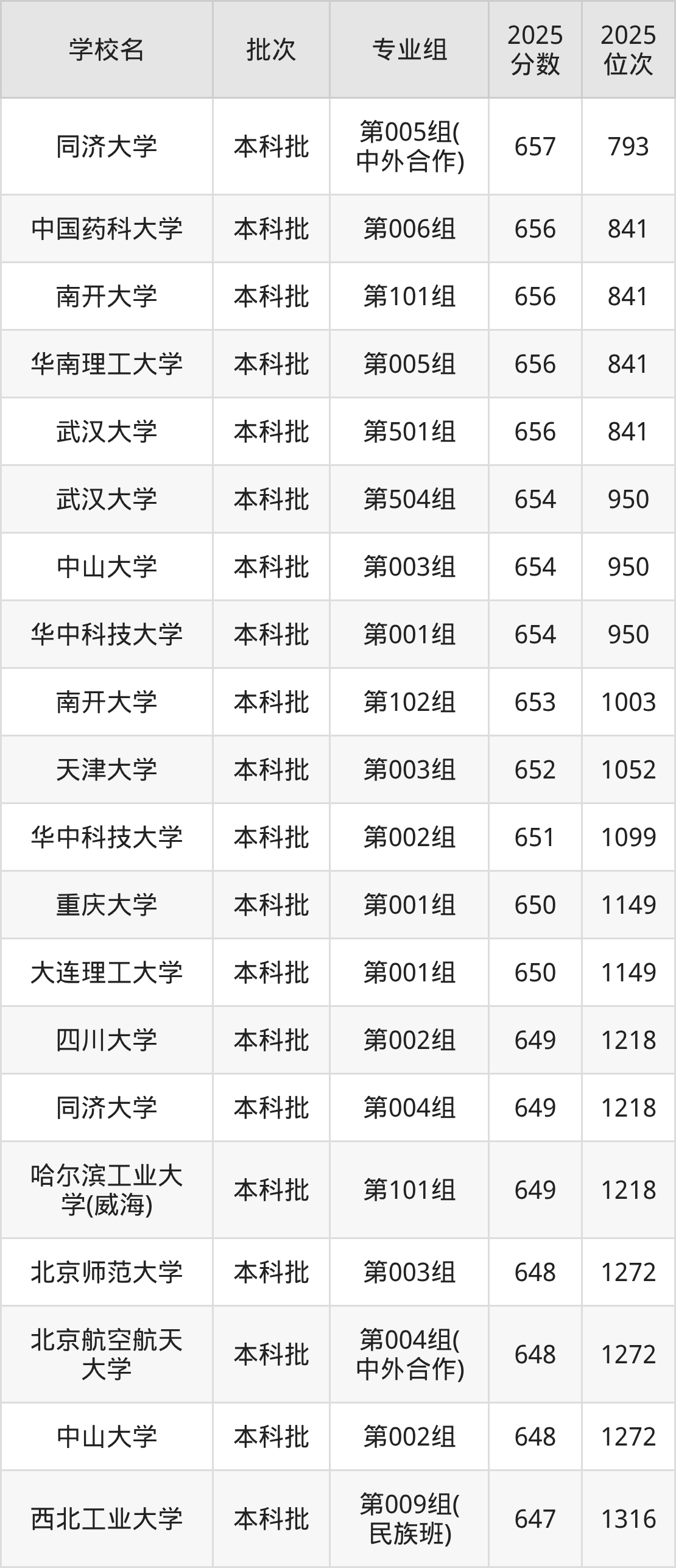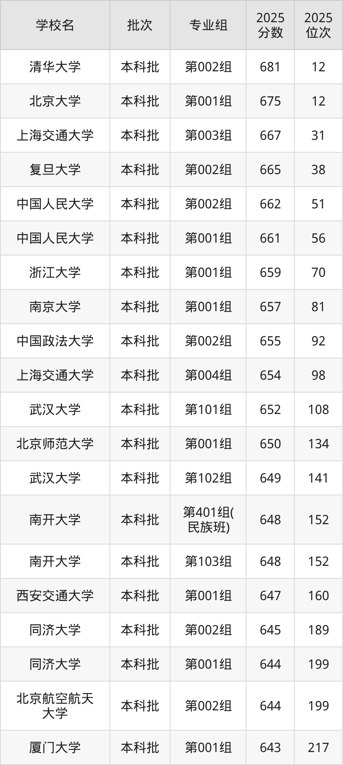 另外录取位次低于该区间(较稳妥)的有西安交通大学第001组(160名)、同济大学第002组(189名)等;录取位次高于该区间(可冲)的有武汉大学第102组(141名)、北京师范大学第001组(134名)等。