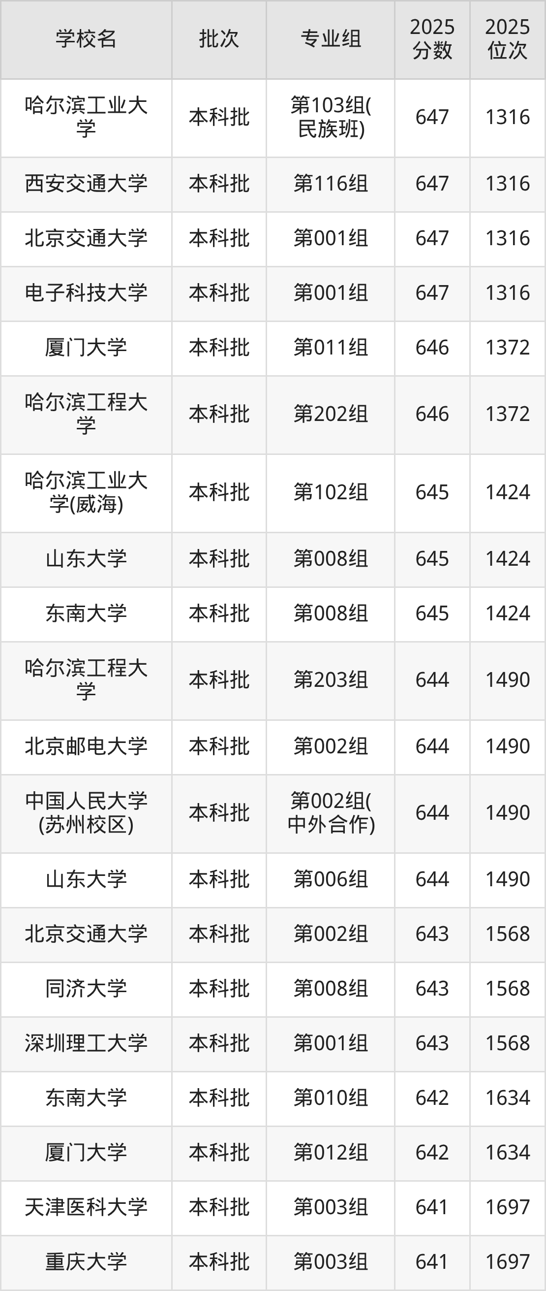 另外录取位次低于该区间(较稳妥)的有西北工业大学第009组(民族班)(1316名)、电子科技大学第001组(1316名)等;录取位次高于该区间(可冲)的有同济大学第004组(1218名)、哈尔滨工业大学(威海)第101组(1218名)等。