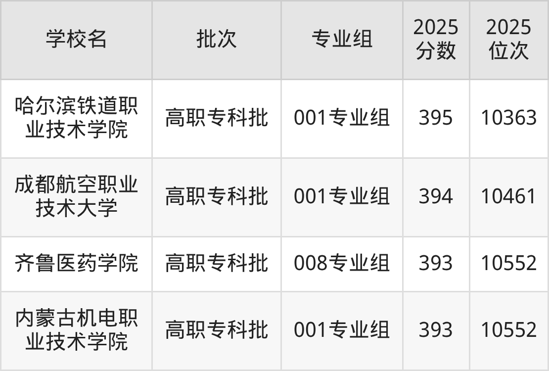 另外录取位次低于该区间(较稳妥)的有重庆医药高等专科学校003专业组(25112名)、北京金融科技学院001专业组(25112名)等;录取位次高于该区间(可冲)的有沈阳科技学院001专业组(24680名)、沈阳科技学院502专业组(24680名)等。
