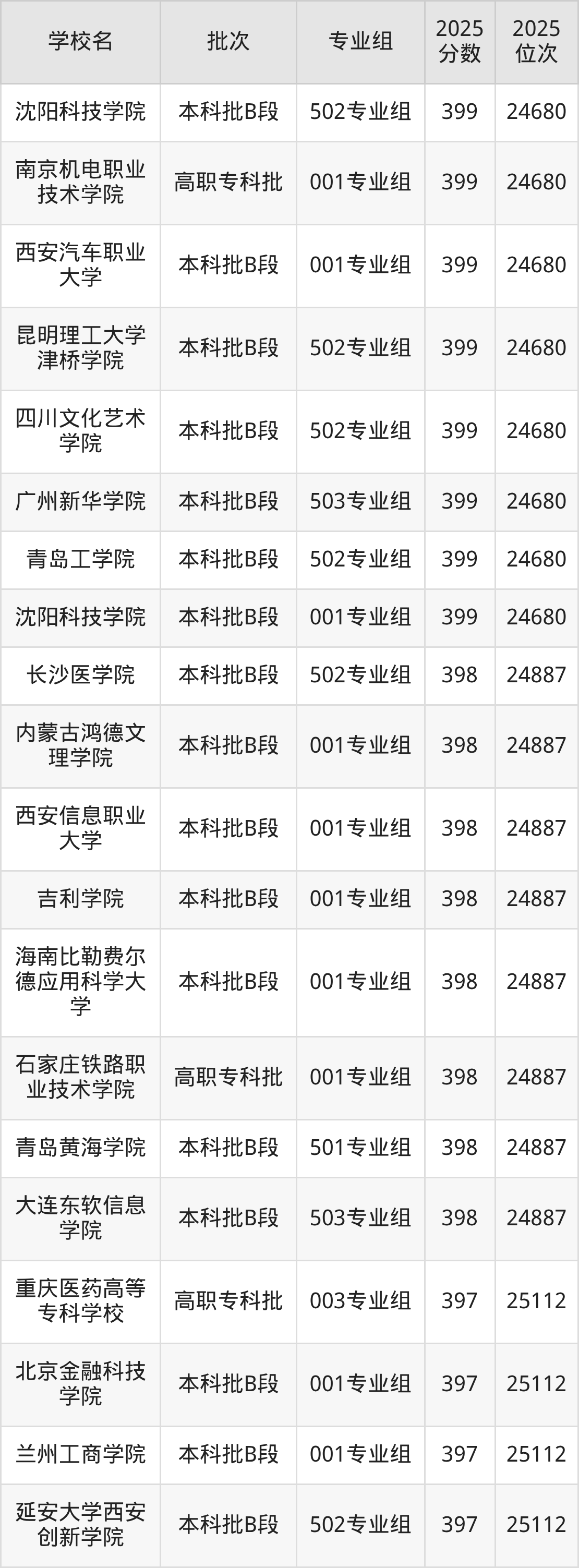 2025年宁夏高考物理类398分(24681名~24887名)能上的大学有内蒙古鸿德文理学院001专业组、大连东软信息学院503专业组、青岛黄海学院501专业组、长沙医学院502专业组等。