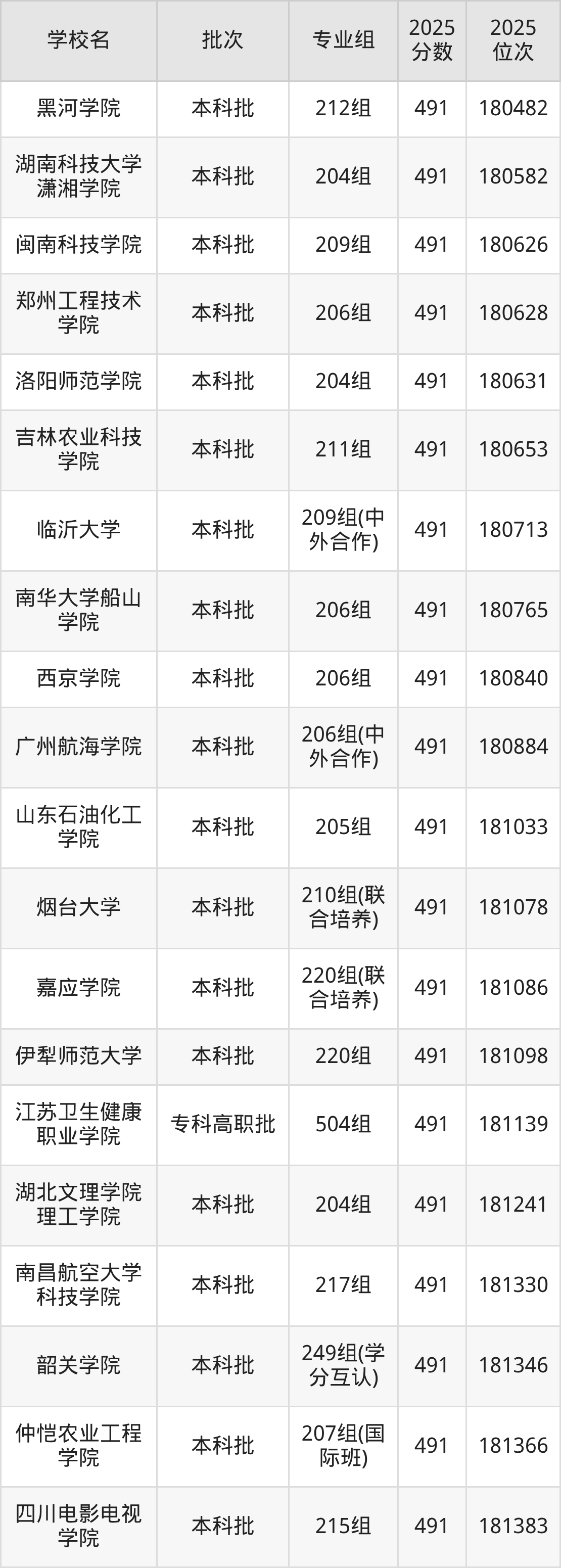 广东高考491分:历史类排名65974位、物理类排名181963位。该分数位次对应能上的大学历史类有广东白云学院220组、吉林外国语大学215组(中外合作);物理类有山西农业大学210组、内蒙古科技大学208组,更多名单如下文所示,2026届考生可参考。