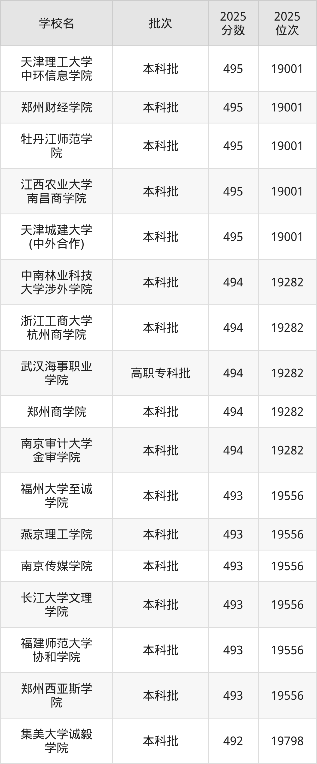 2025年重庆高考历史类493分(19283名~19556名)能上的大学有郑州西亚斯学院、福建师范大学协和学院、长江大学文理学院、南京传媒学院等。