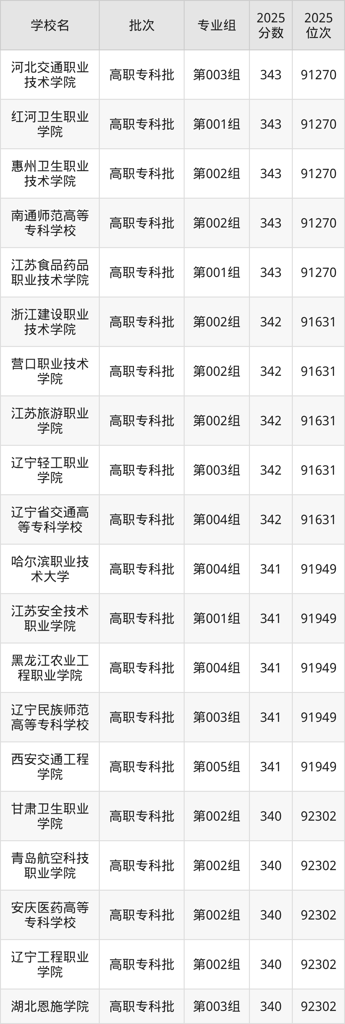 2025年黑龙江高考物理类341分(91632名~91949名)能上的大学有西安交通工程学院第005组、辽宁民族师范高等专科学校第003组、黑龙江农业工程职业学院第004组、哈尔滨职业技术大学第004组等。