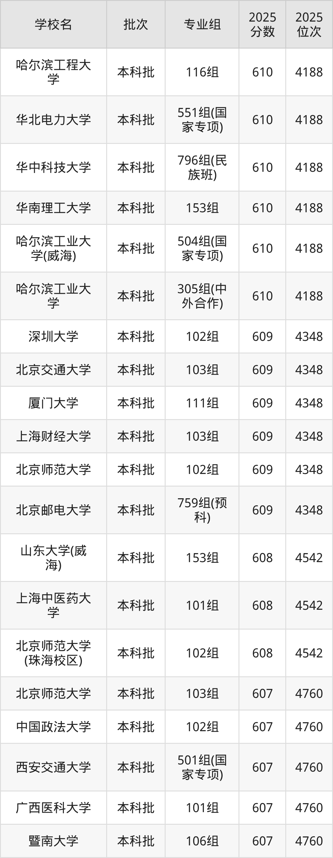 二、广西607分位次排名能上的大学