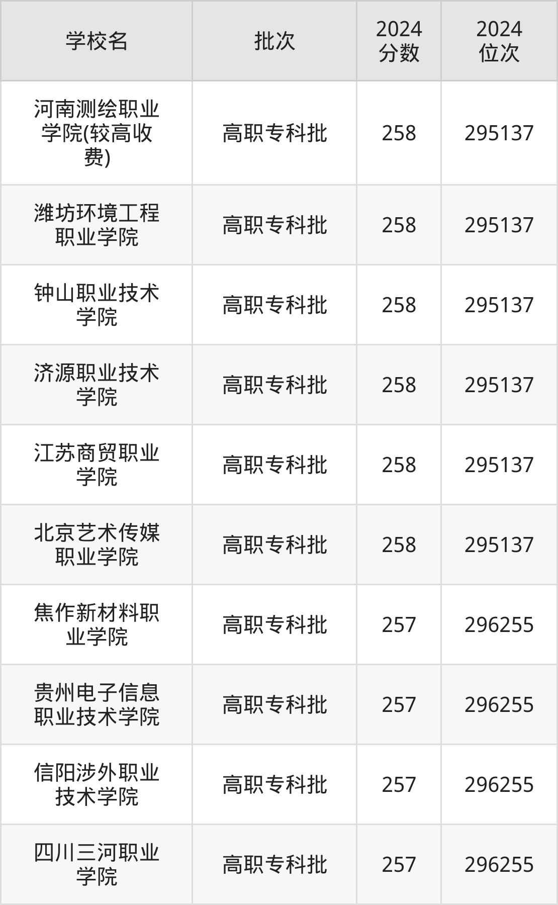 2024年河南高考文科257分(295138名~296255名)能上的大学有四川三河职业学院、信阳涉外职业技术学院、贵州电子信息职业技术学院、焦作新材料职业学院。