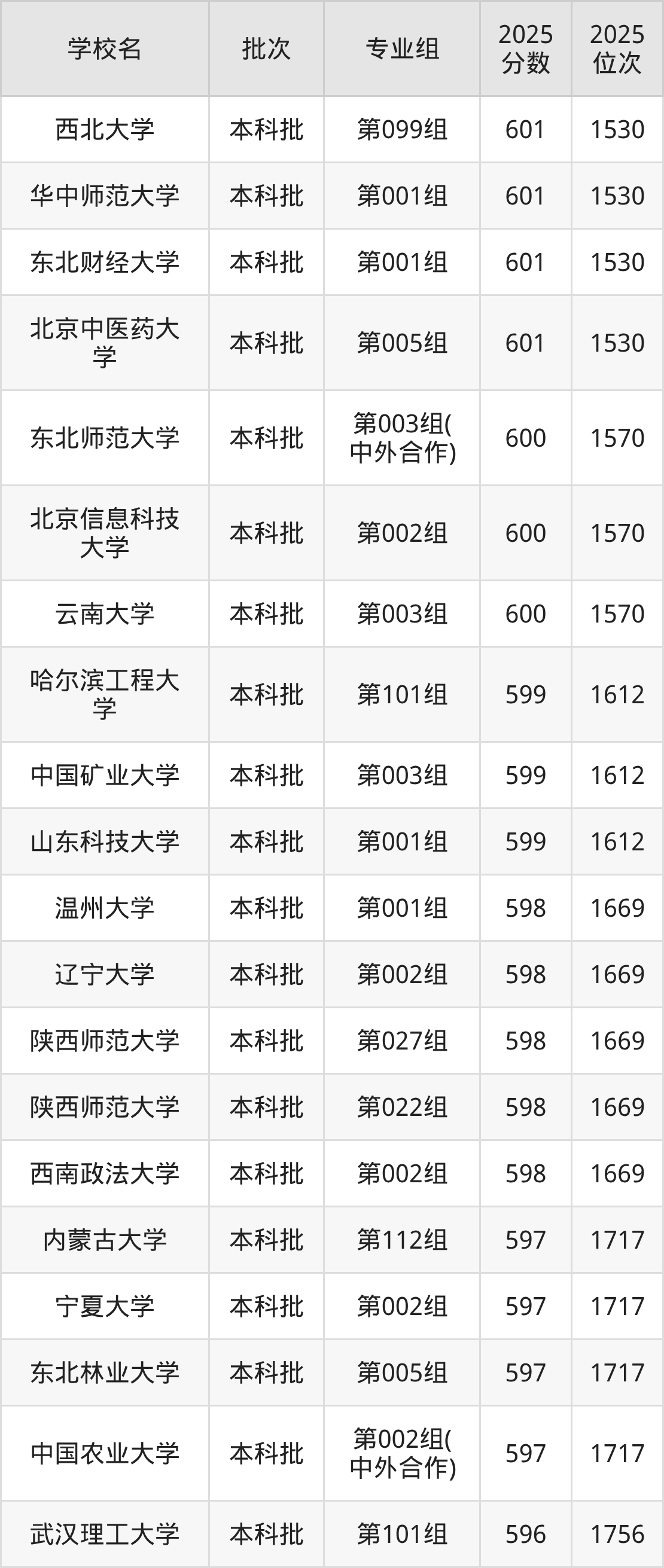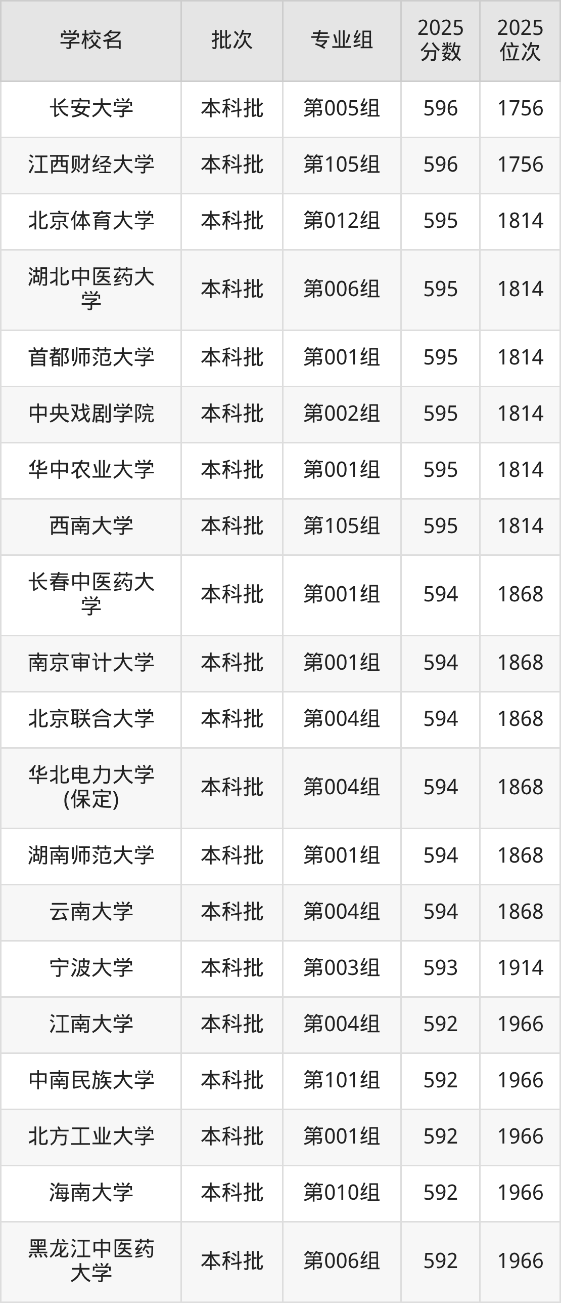 这些都是2026年高考历史类2018名~2068名考生可以报考的大学,更多学校名单如下表所示: