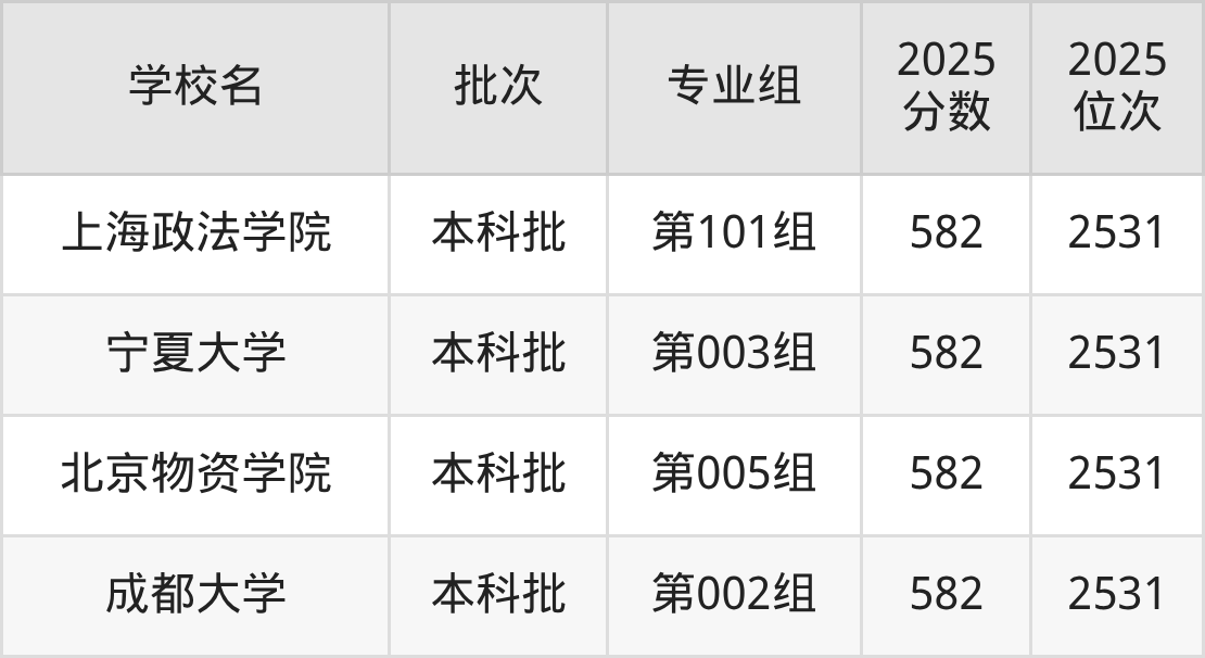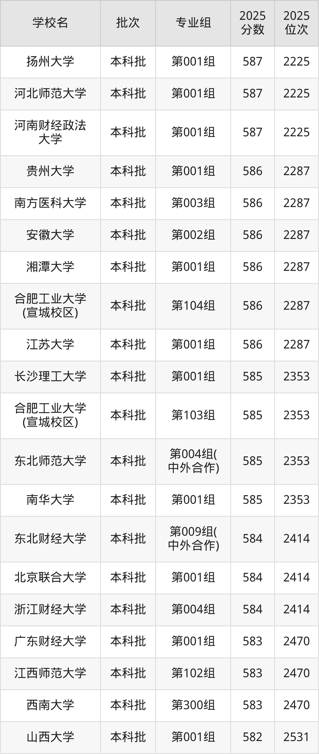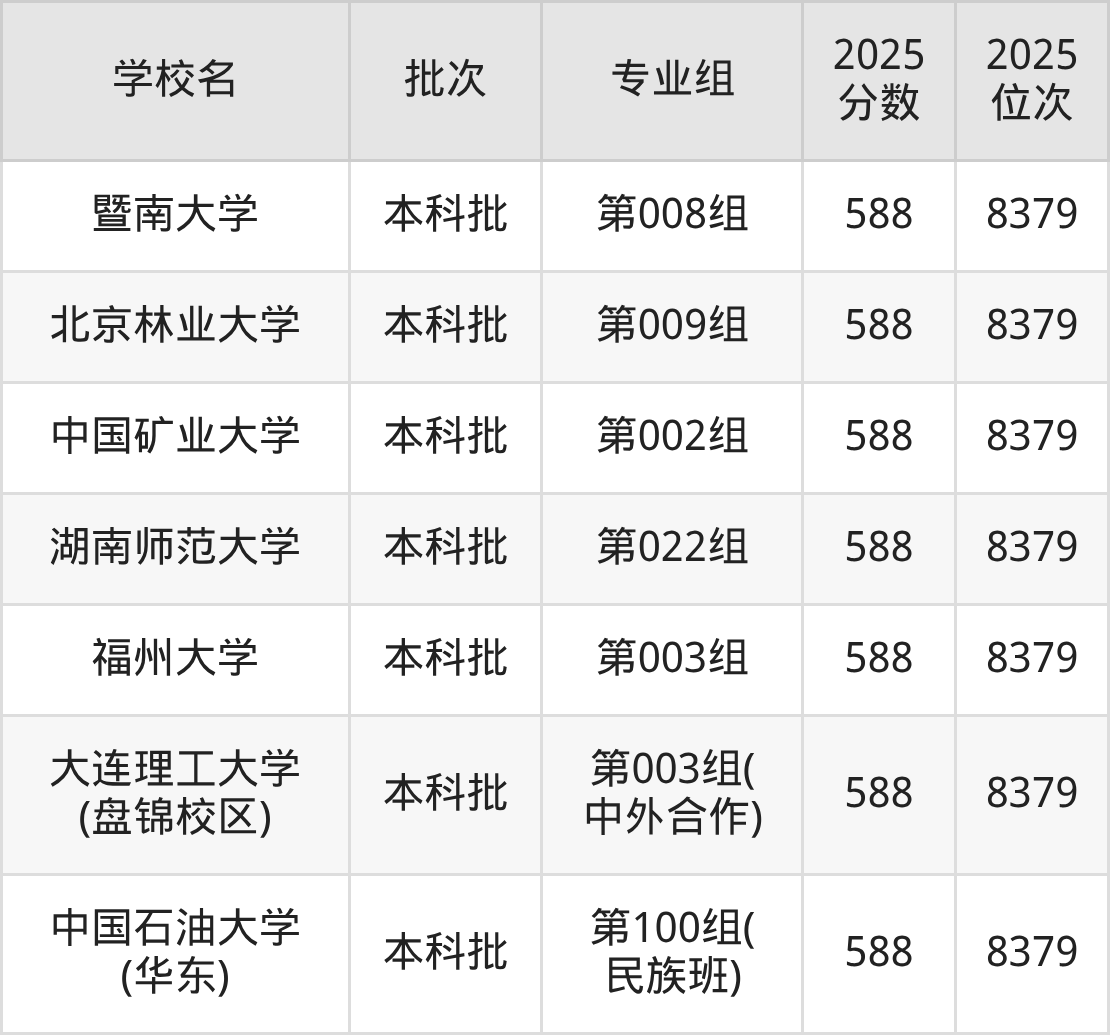 2025年内蒙古高考物理类590分(7839名~8013名)能上的大学有吉林大学第007组、西北农林科技大学第009组、北京信息科技大学第001组、上海理工大学第002组等。