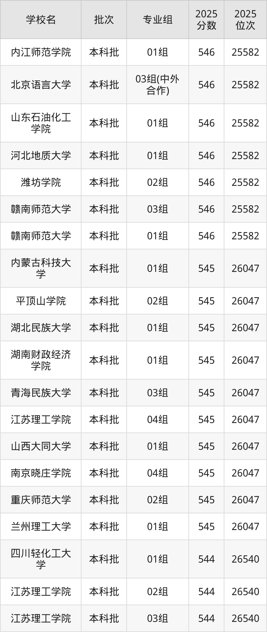 2025年江苏高考历史类544分(26048名~26540名)能上的大学有江苏理工学院02组、江苏理工学院03组、苏州工学院01组、山东交通学院01组等。