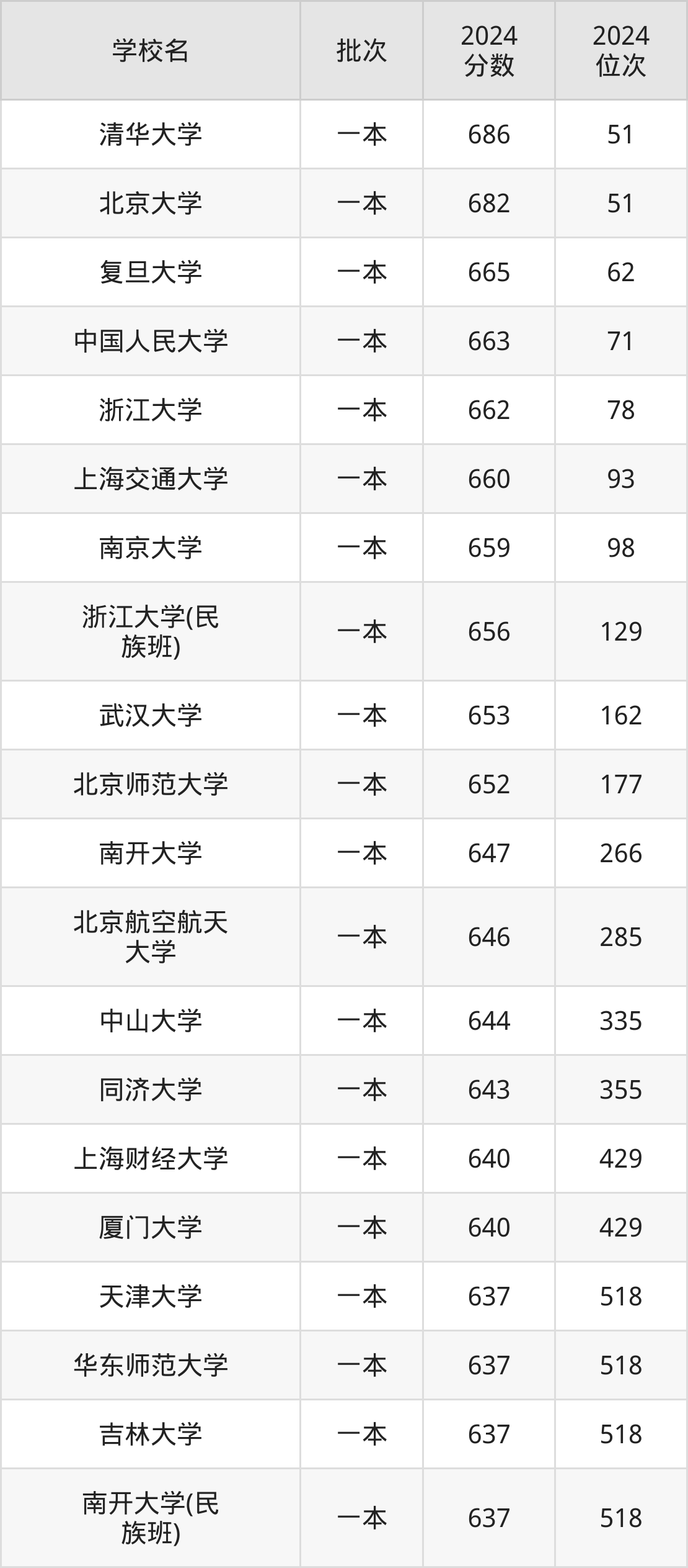 2024年云南高考理科641分(1507名~1587名)能上的大学有同济大学(中外合作)、浙江大学(民族班)。