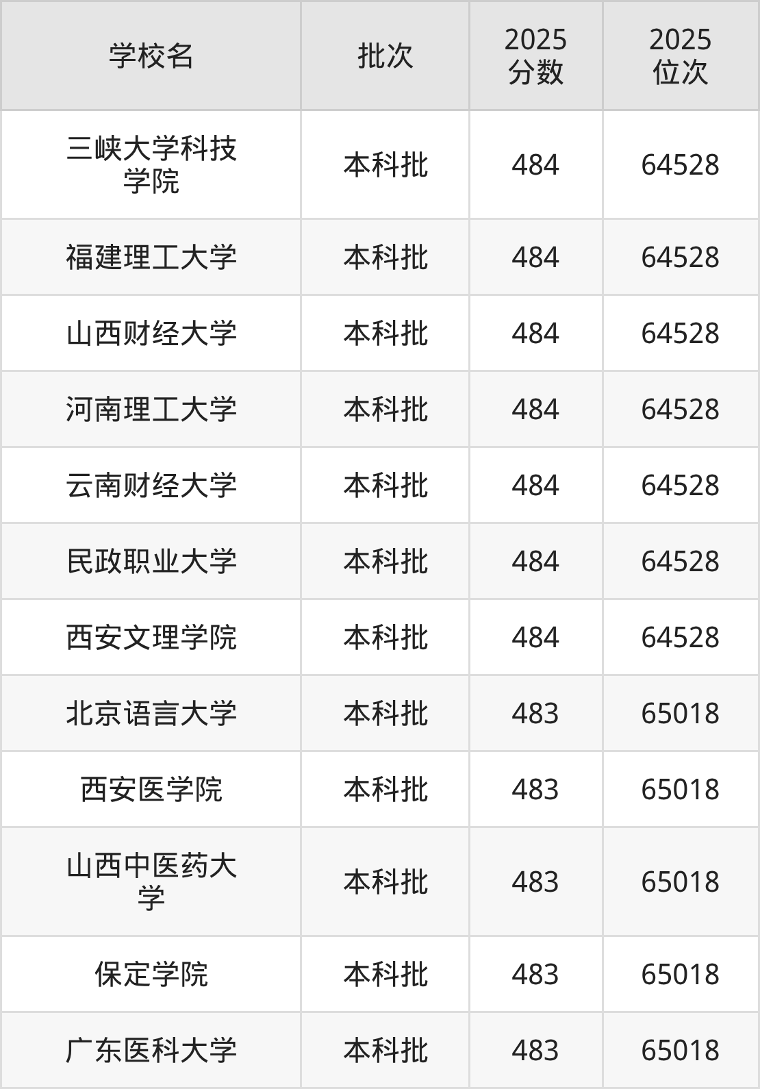 2025年辽宁高考物理类483分(64529名~65018名)能上的大学有广东医科大学、保定学院、山西中医药大学、西安医学院等。