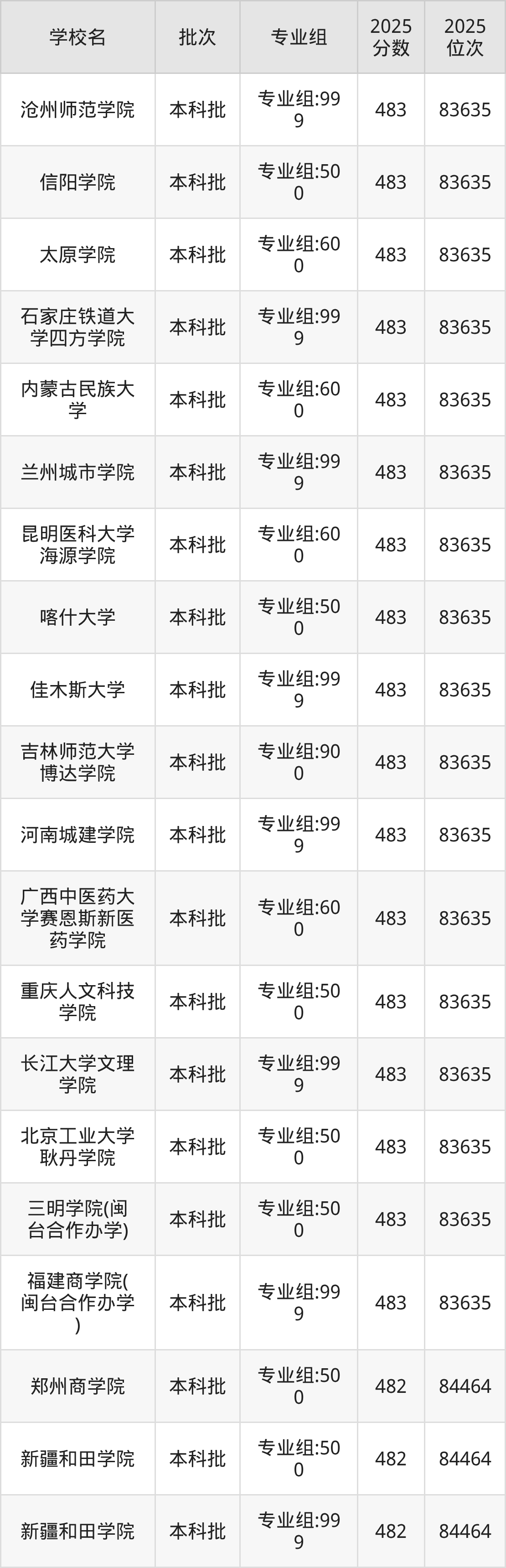 这些都是2026年高考物理类83636名~84464名考生可以报考的大学,更多学校名单如下表所示: