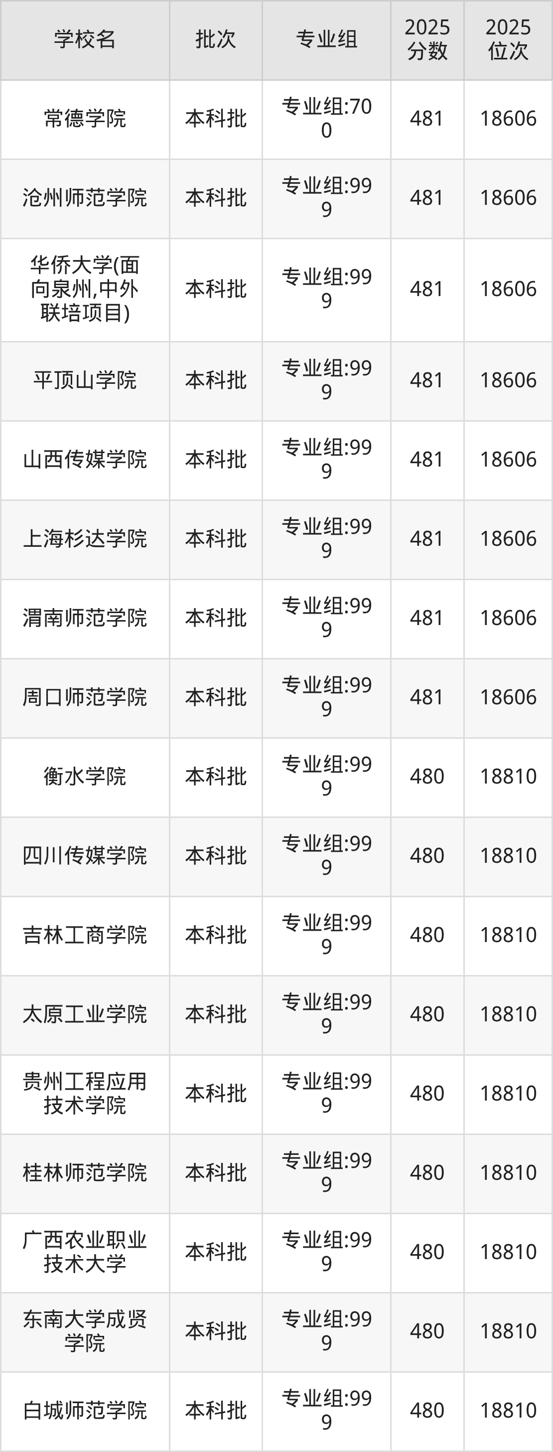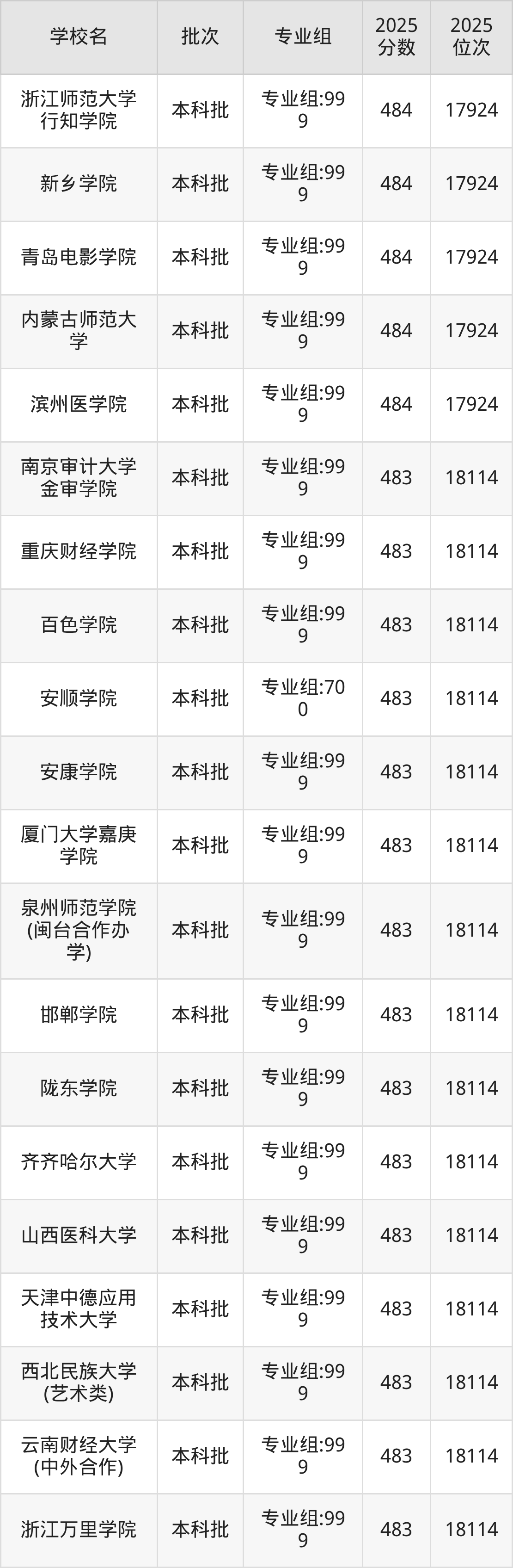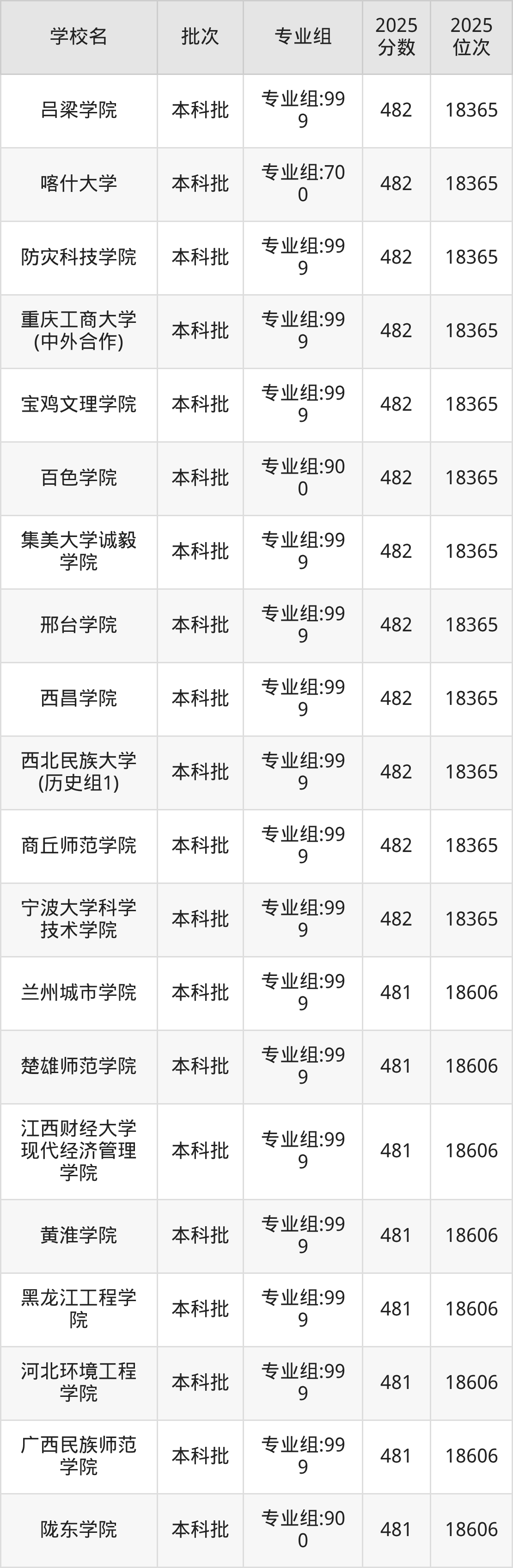 这些都是2026年高考历史类18115名~18365名考生可以报考的大学,更多学校名单如下表所示: