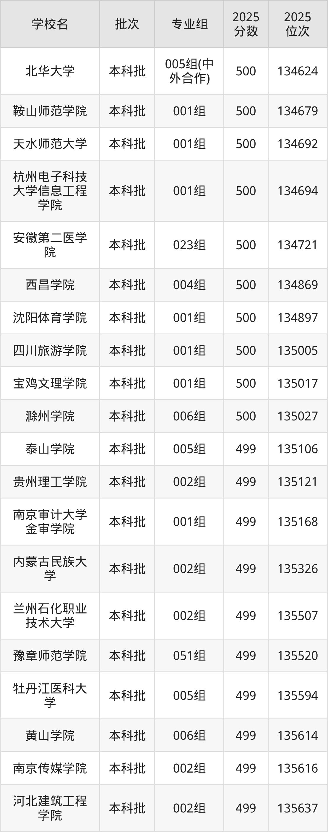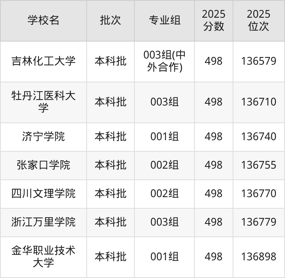 这些都是2026年高考物理类135051名~136506名考生可以报考的大学,更多学校名单如下表所示: