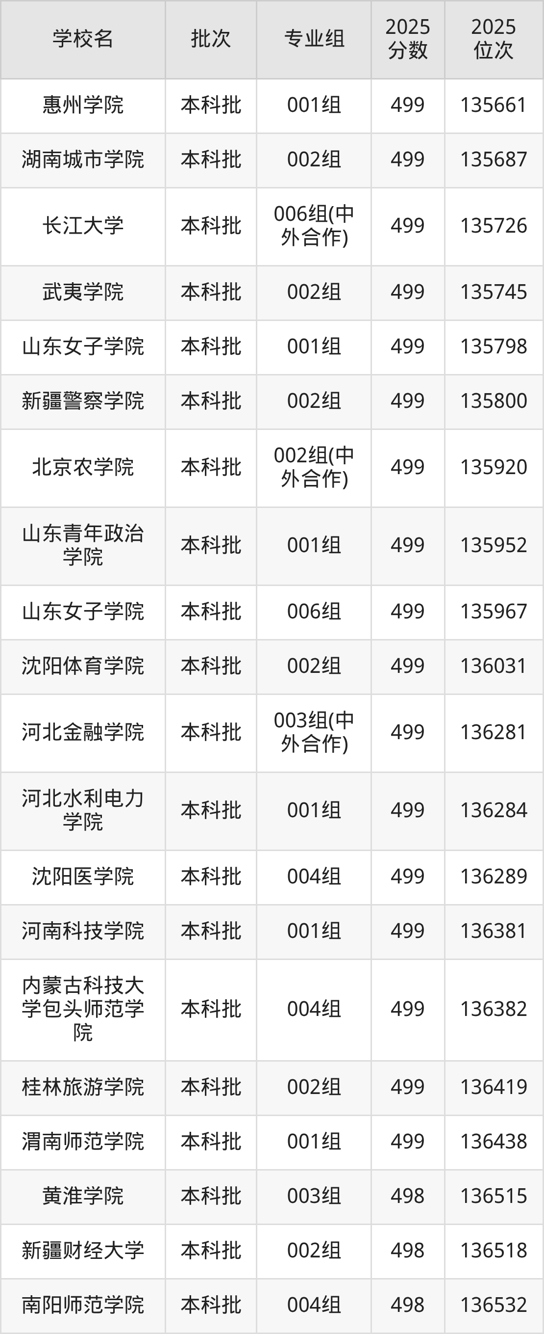 2025年安徽高考物理类499分(135051名~136506名)能上的大学有北京农学院002组(中外合作)、长江大学006组(中外合作)、贵州理工学院002组、桂林旅游学院002组等。