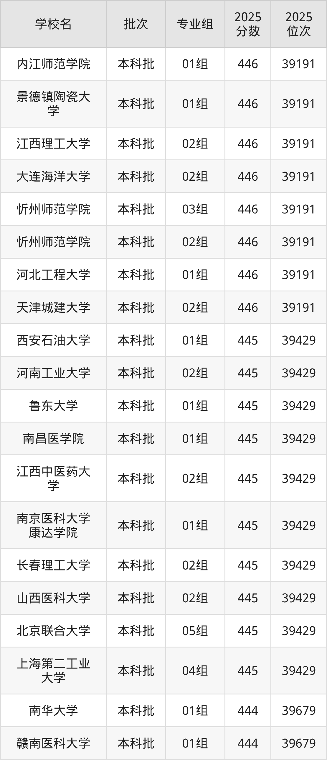 这些都是2026年高考39680名~39958名考生可以报考的大学,更多学校名单如下表所示:
