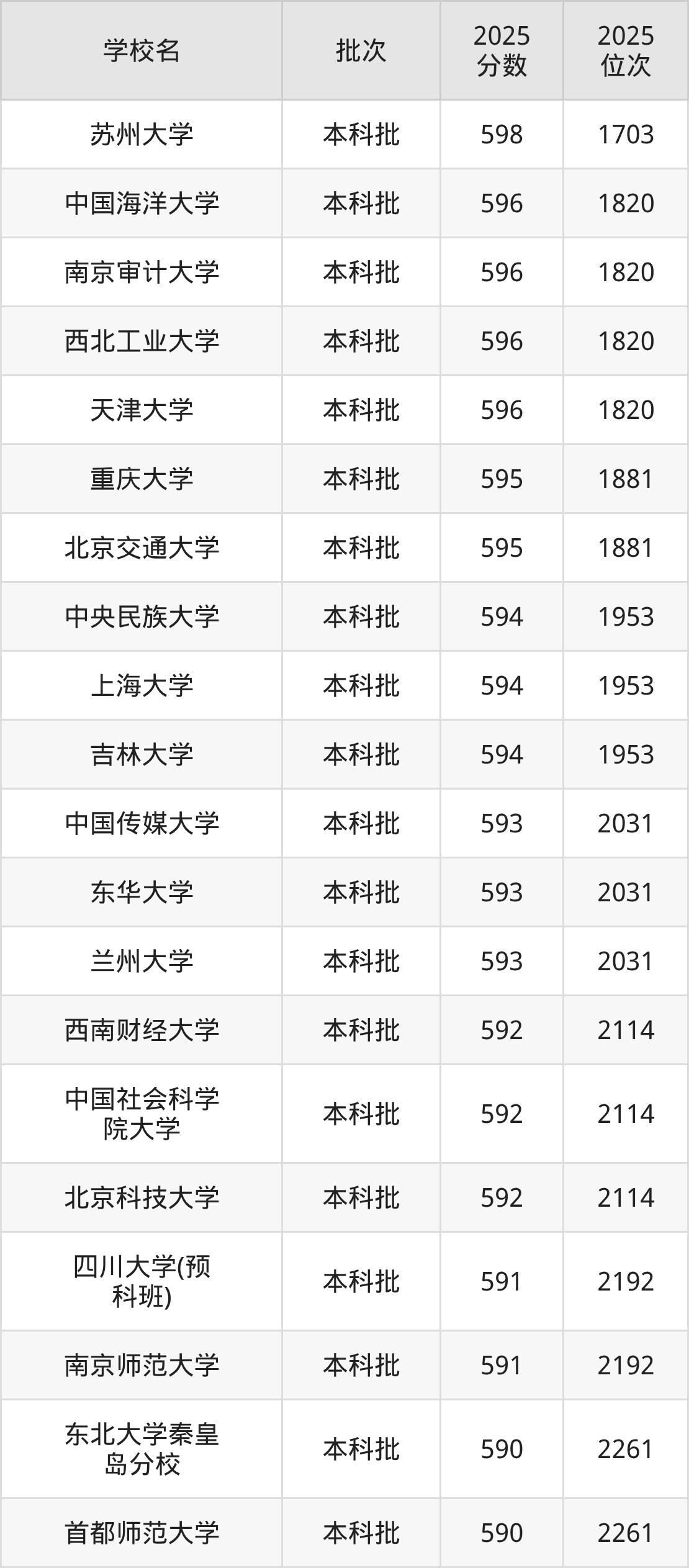 2025年重庆高考历史类590分(2193名~2261名)能上的大学有首都师范大学、东北大学秦皇岛分校。
