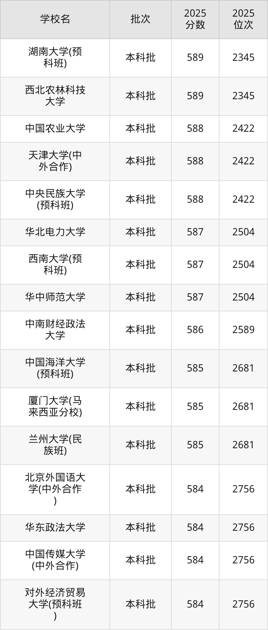 这些都是2026年高考历史类2193名~2261名考生可以报考的大学,更多学校名单如下表所示: