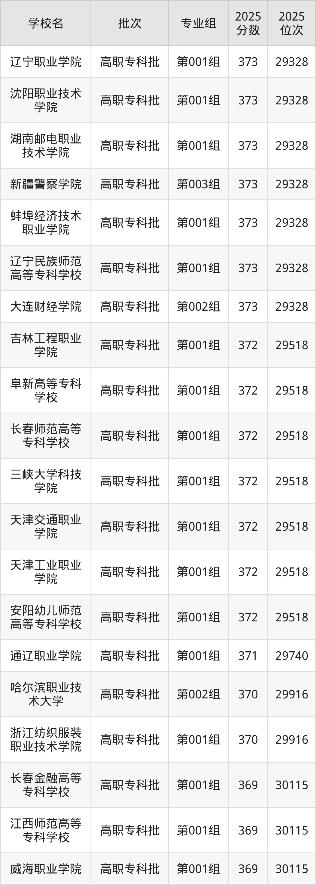 2025年黑龙江高考历史类370分(29741名~29916名)能上的大学有哈尔滨职业技术大学第002组、浙江纺织服装职业技术学院第001组。