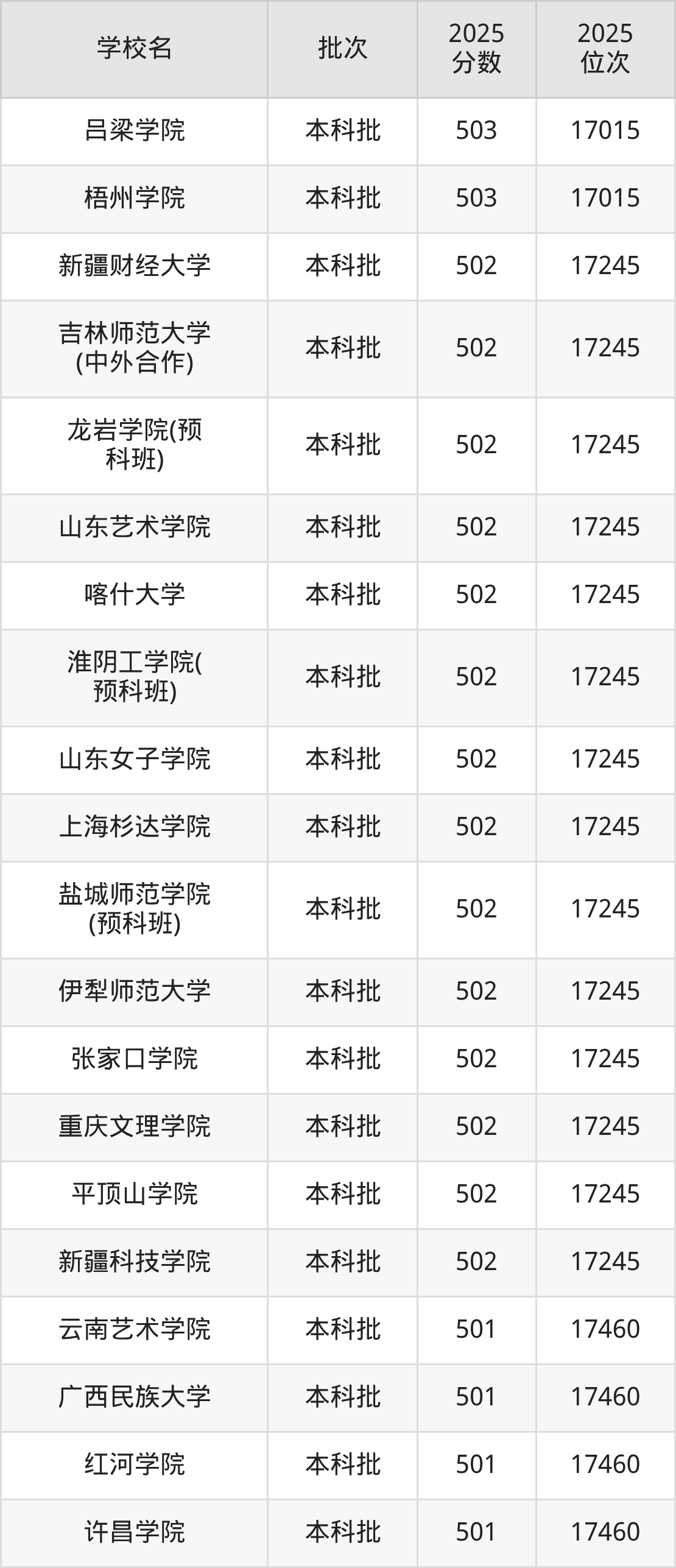 这些都是2026年高考历史类17461名~17717名考生可以报考的大学,更多学校名单如下表所示: