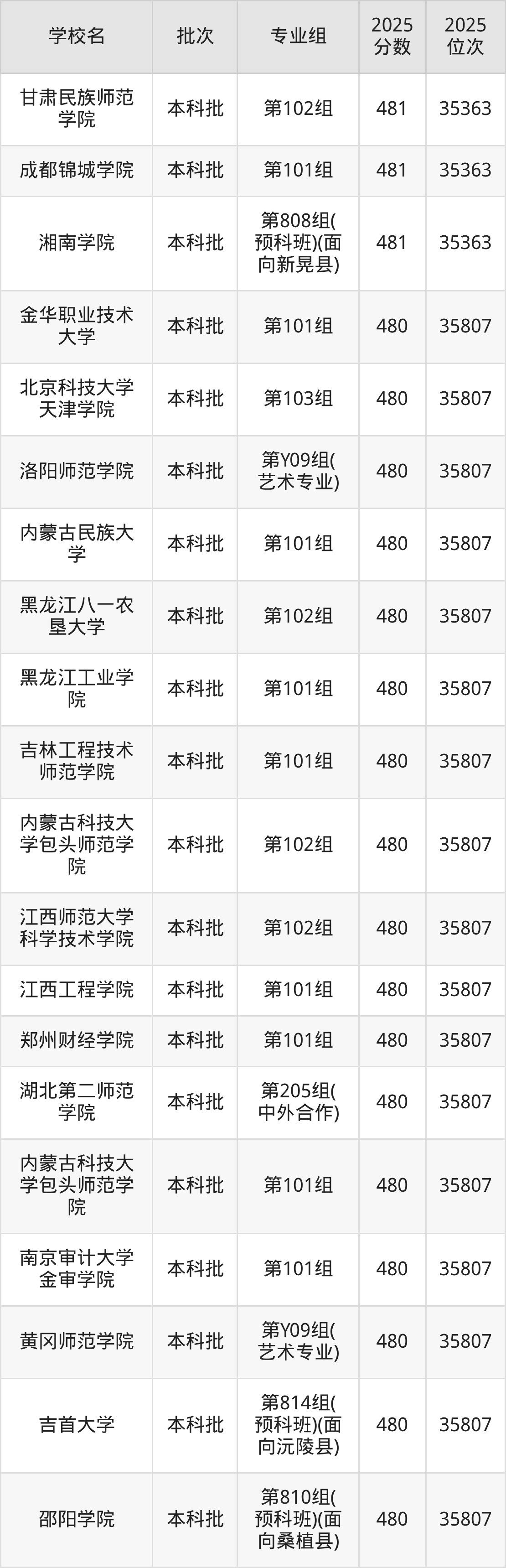 这些都是2026年高考历史类35808名~36291名考生可以报考的大学,更多学校名单如下表所示: