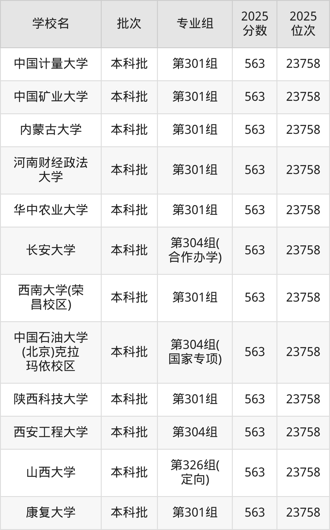 另外录取位次低于该区间(较稳妥)的有河北轨道运输职业技术学院第301组(9283名)、成都信息工程大学第303组(23758名)等;录取位次高于该区间(可冲)的有山西大学第320组(定向)(22830名)、山西大学第336组(定向)(22830名)等。