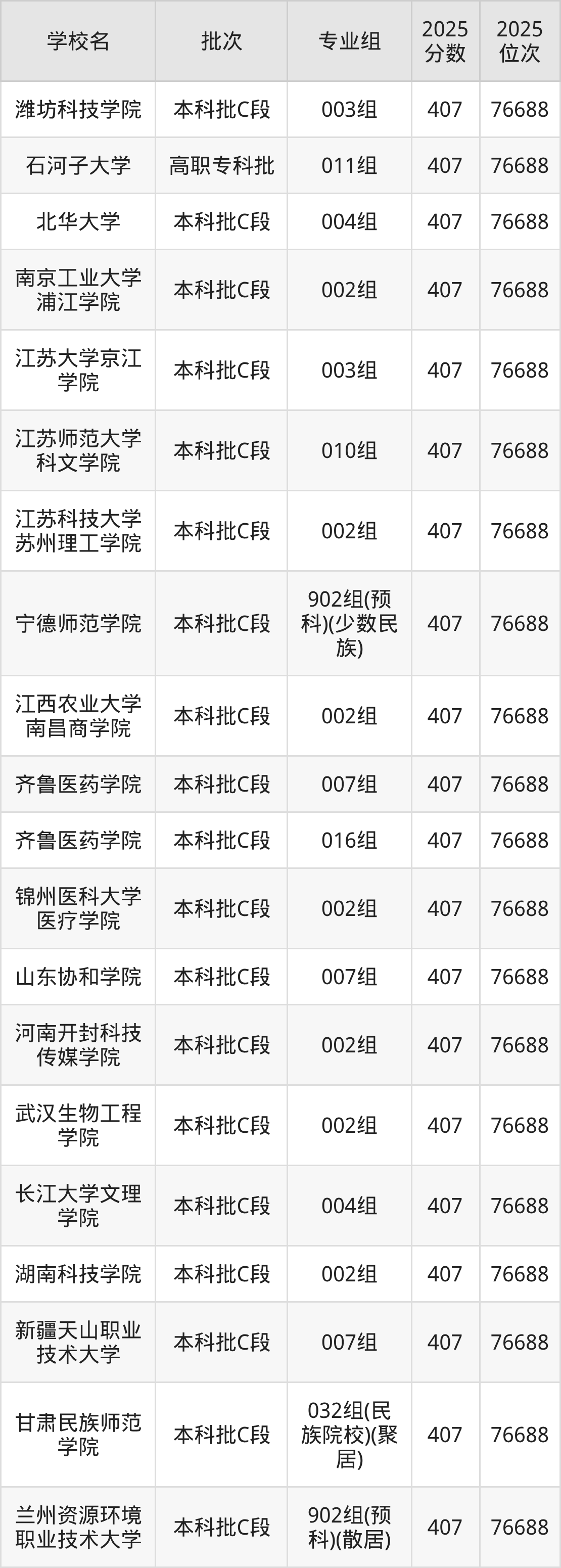这些都是2026年高考物理类76689名~77244名考生可以报考的大学,更多学校名单如下表所示: