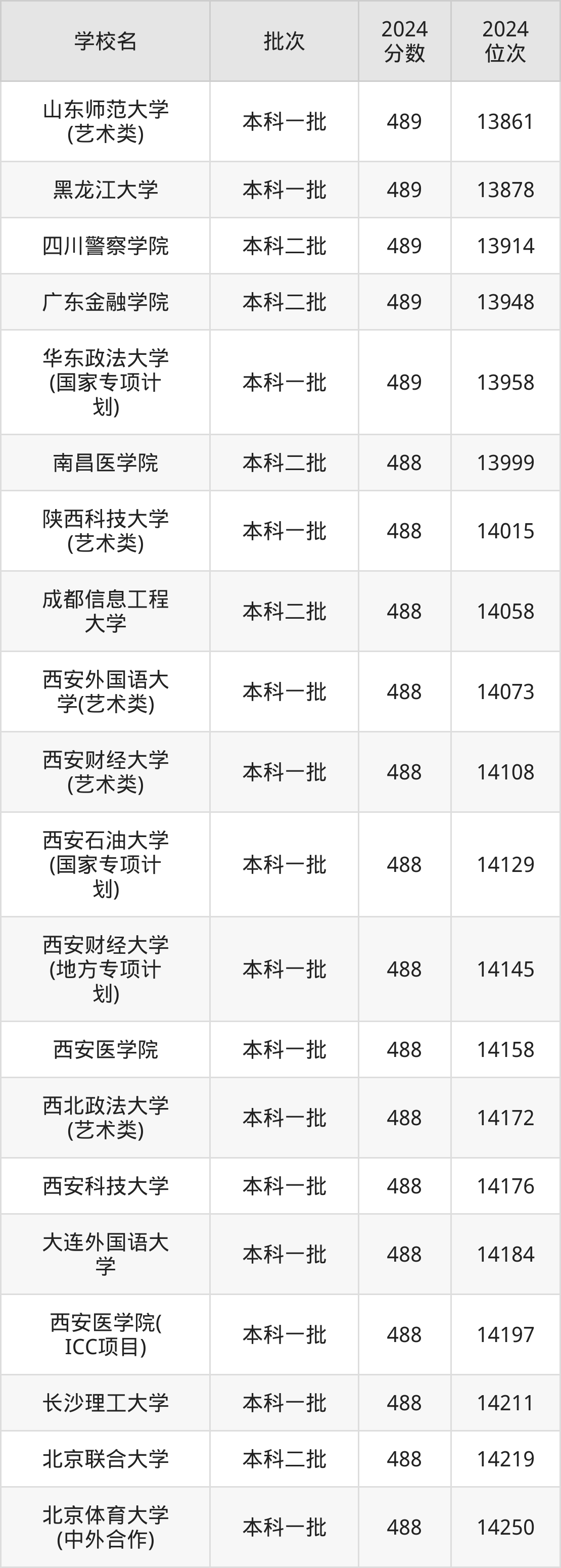 这些都是2025年高考文科14304名~14607名考生可以报考的大学,更多学校名单如下表所示: