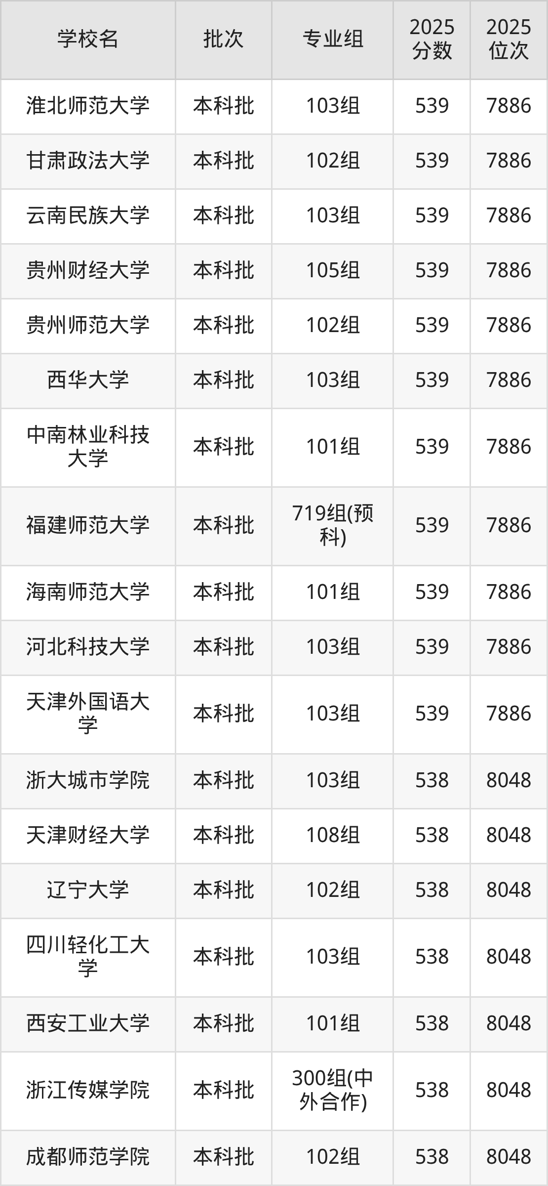 这些都是2026年高考历史类7513名~7709名考生可以报考的大学,更多学校名单如下表所示: