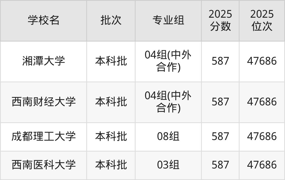 这些都是2026年高考物理类46627名~47686名考生可以报考的大学,更多学校名单如下表所示: