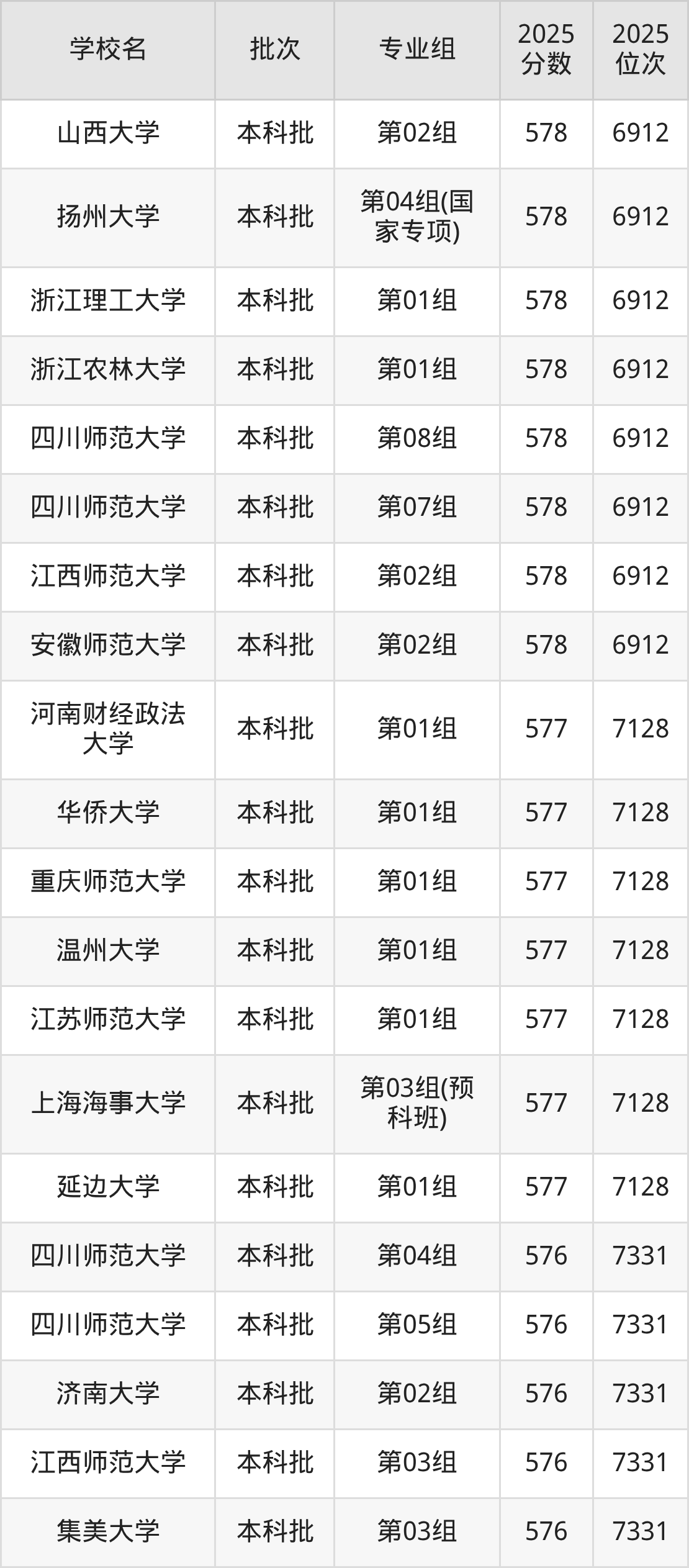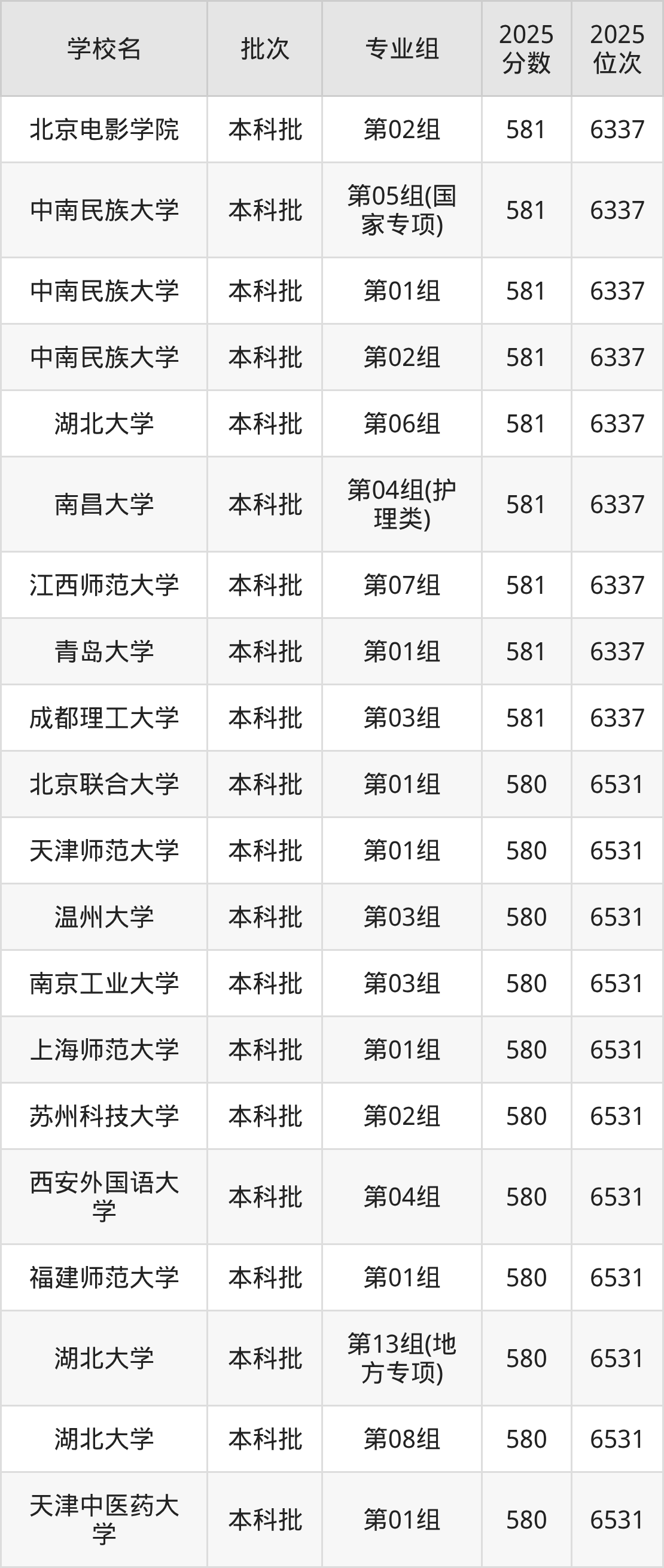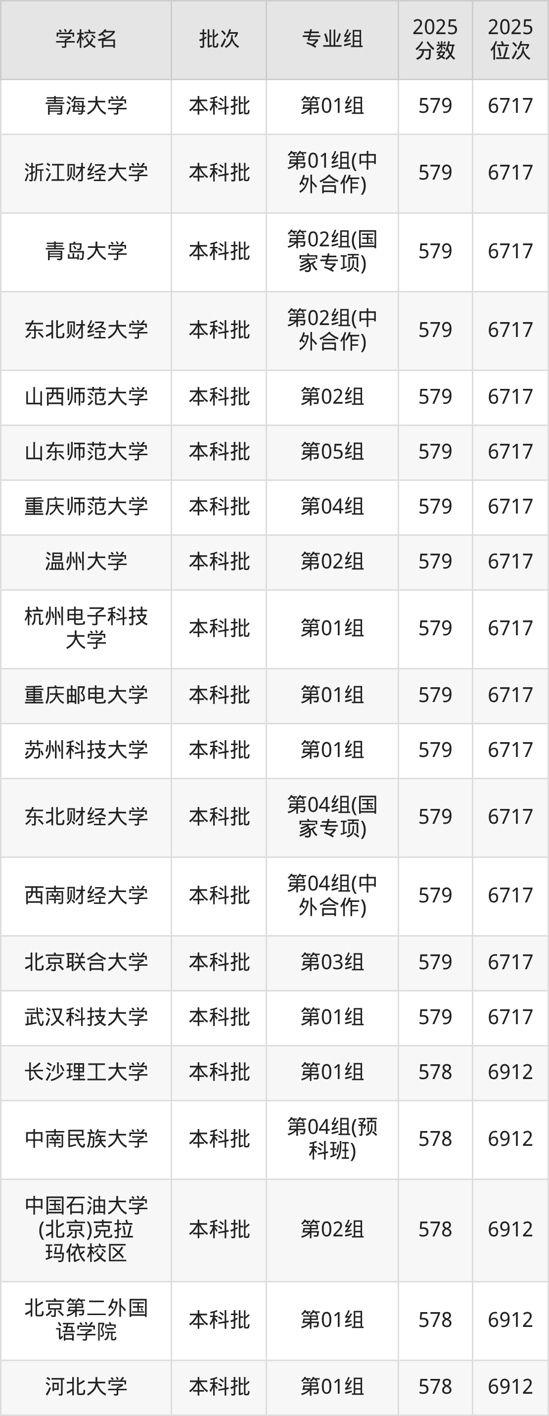 2025年湖北高考历史类578分(6718名~6912名)能上的大学有中南民族大学第04组(预科班)、中国石油大学(北京)克拉玛依校区第02组、北京第二外国语学院第01组、河北大学第01组等。