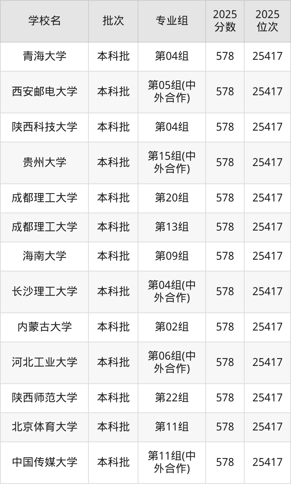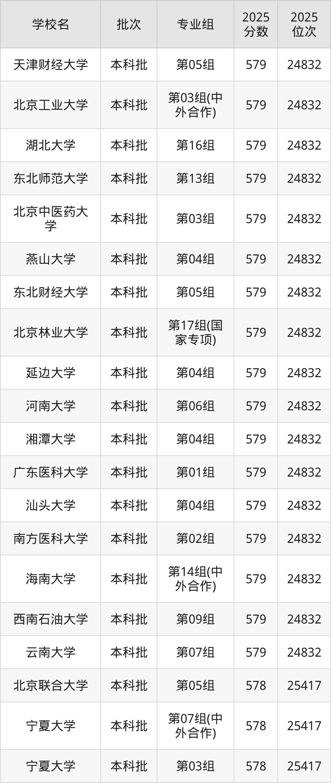 2025年湖北高考物理类578分(24833名~25417名)能上的大学有中国传媒大学第11组(中外合作)、北京体育大学第11组、陕西师范大学第22组、北京联合大学第05组等。