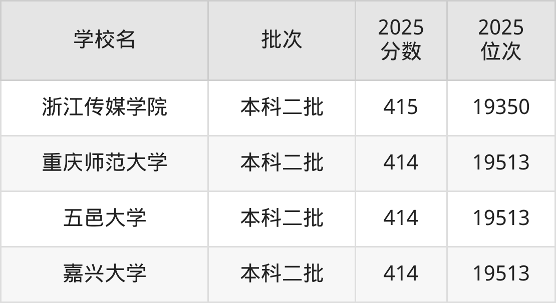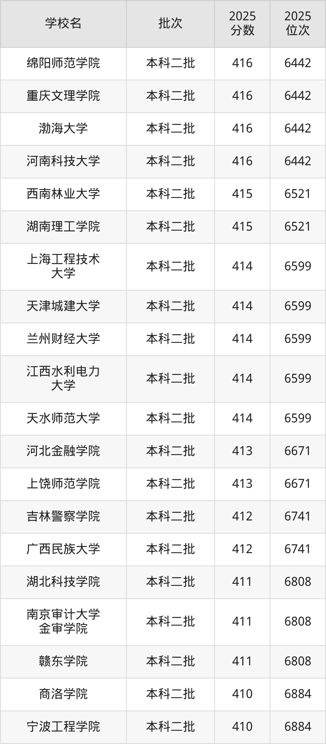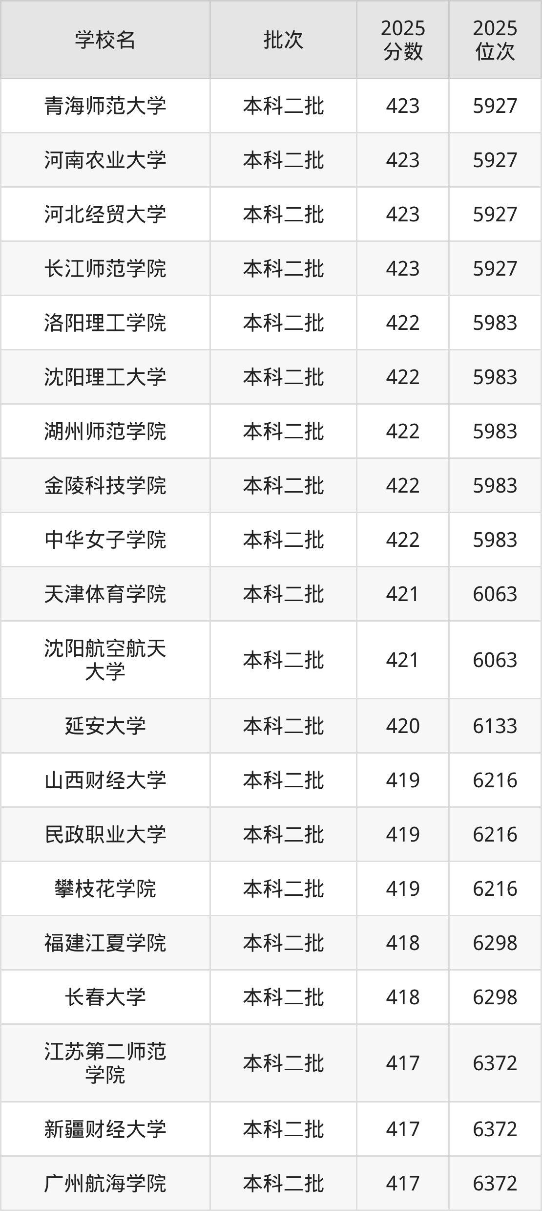 这些都是2026年高考文科6373名~6442名考生可以报考的大学,更多学校名单如下表所示: