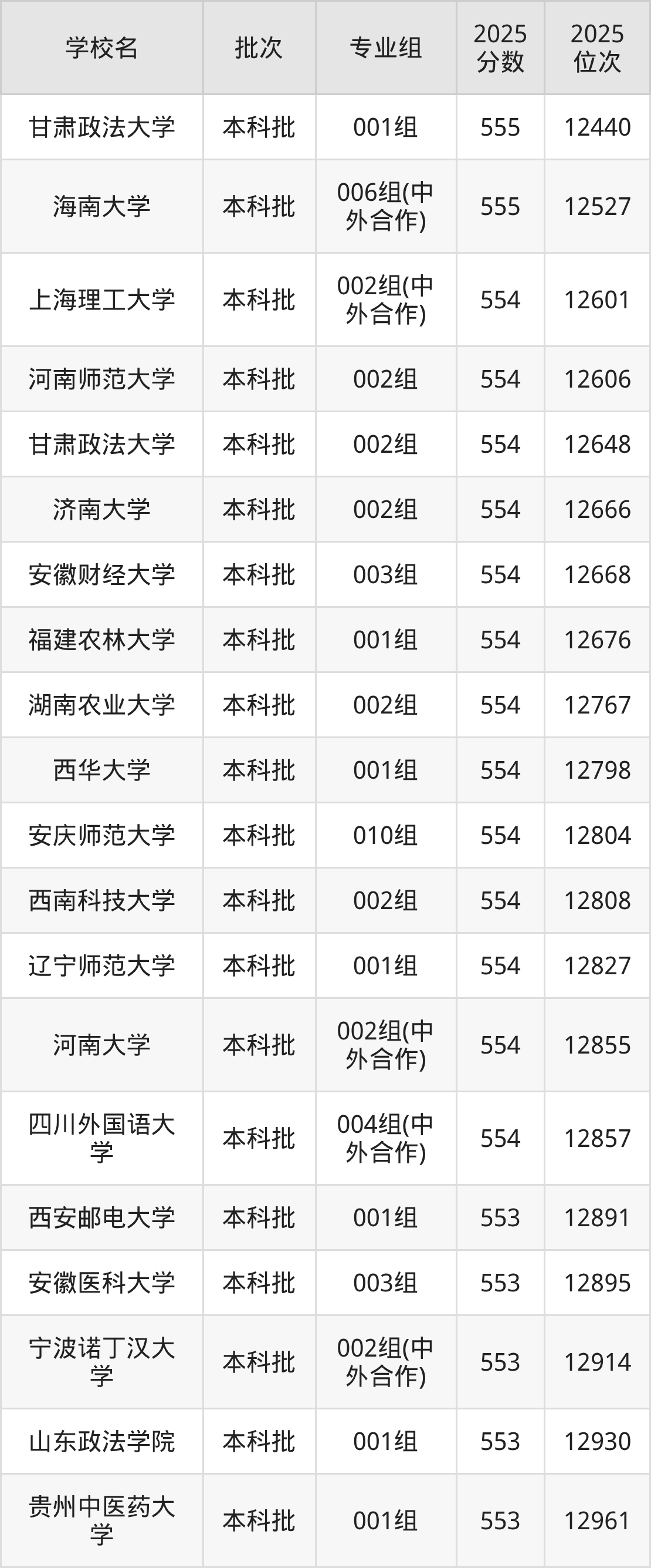 另外录取位次低于该区间(较稳妥)的有天津科技大学001组(13195名)、成都中医药大学002组(13236名)等;录取位次高于该区间(可冲)的有四川外国语大学004组(中外合作)(12857名)、河南大学002组(中外合作)(12855名)等。