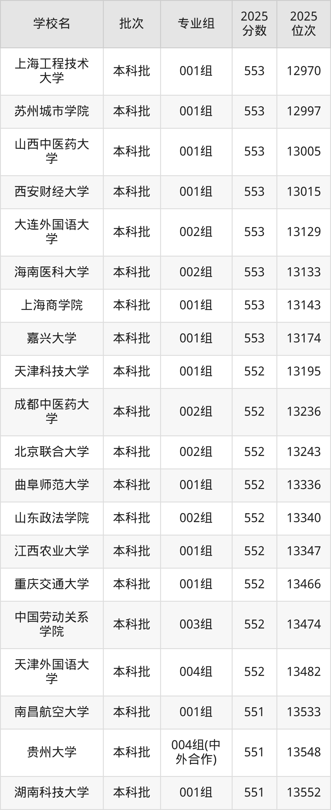 2025年安徽高考历史类553分(12868名~13186名)能上的大学有大连外国语大学002组、贵州中医药大学001组、海南医科大学002组、嘉兴大学001组等。