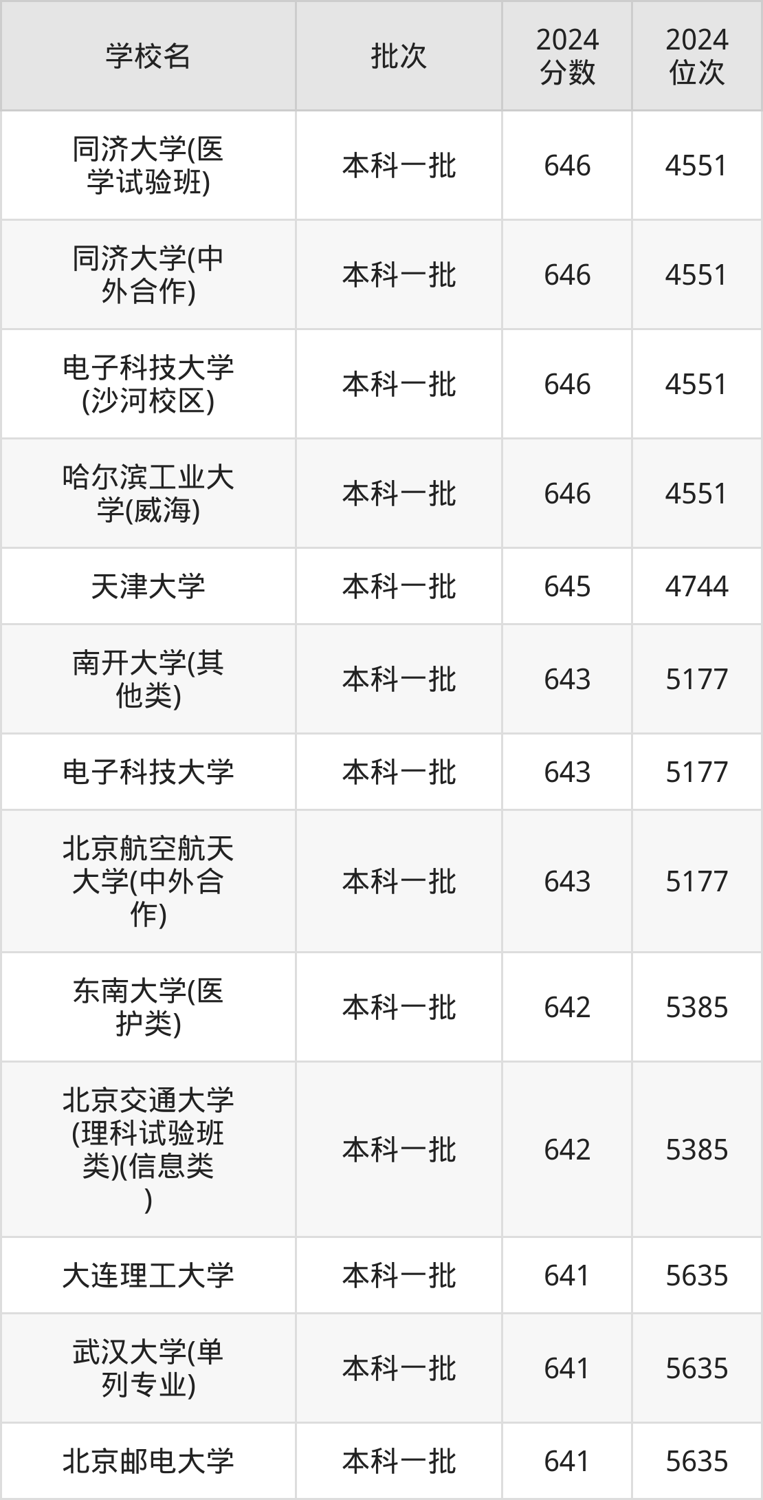 2024年河南高考理科643分(4967名~5177名)能上的大学有电子科技大学、南开大学(其他类)、北京航空航天大学(中外合作)。