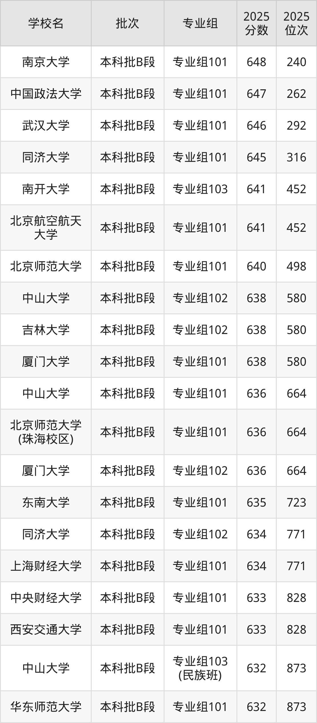 2025年四川高考历史类634分(724名~771名)能上的大学有上海财经大学专业组101、同济大学专业组102。
