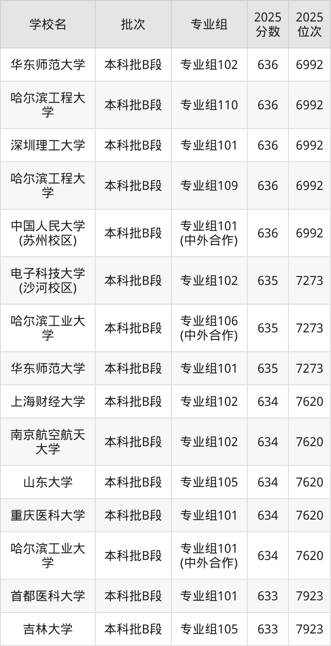 另外录取位次低于该区间(较稳妥)的有首都医科大学专业组101(7923名)、吉林大学专业组105(7923名)等;录取位次高于该区间(可冲)的有电子科技大学(沙河校区)专业组102(7273名)、华东师范大学专业组101(7273名)等。